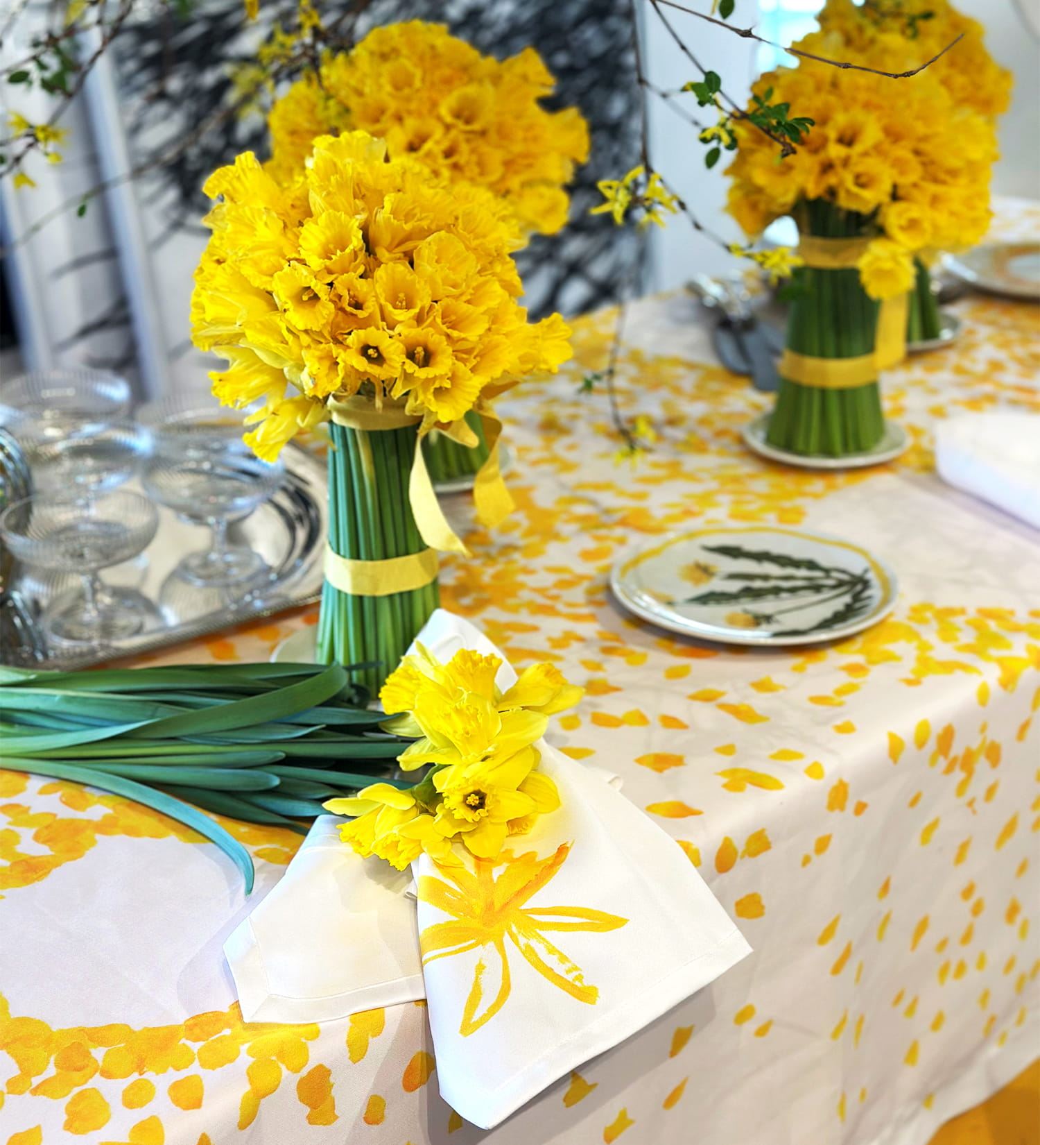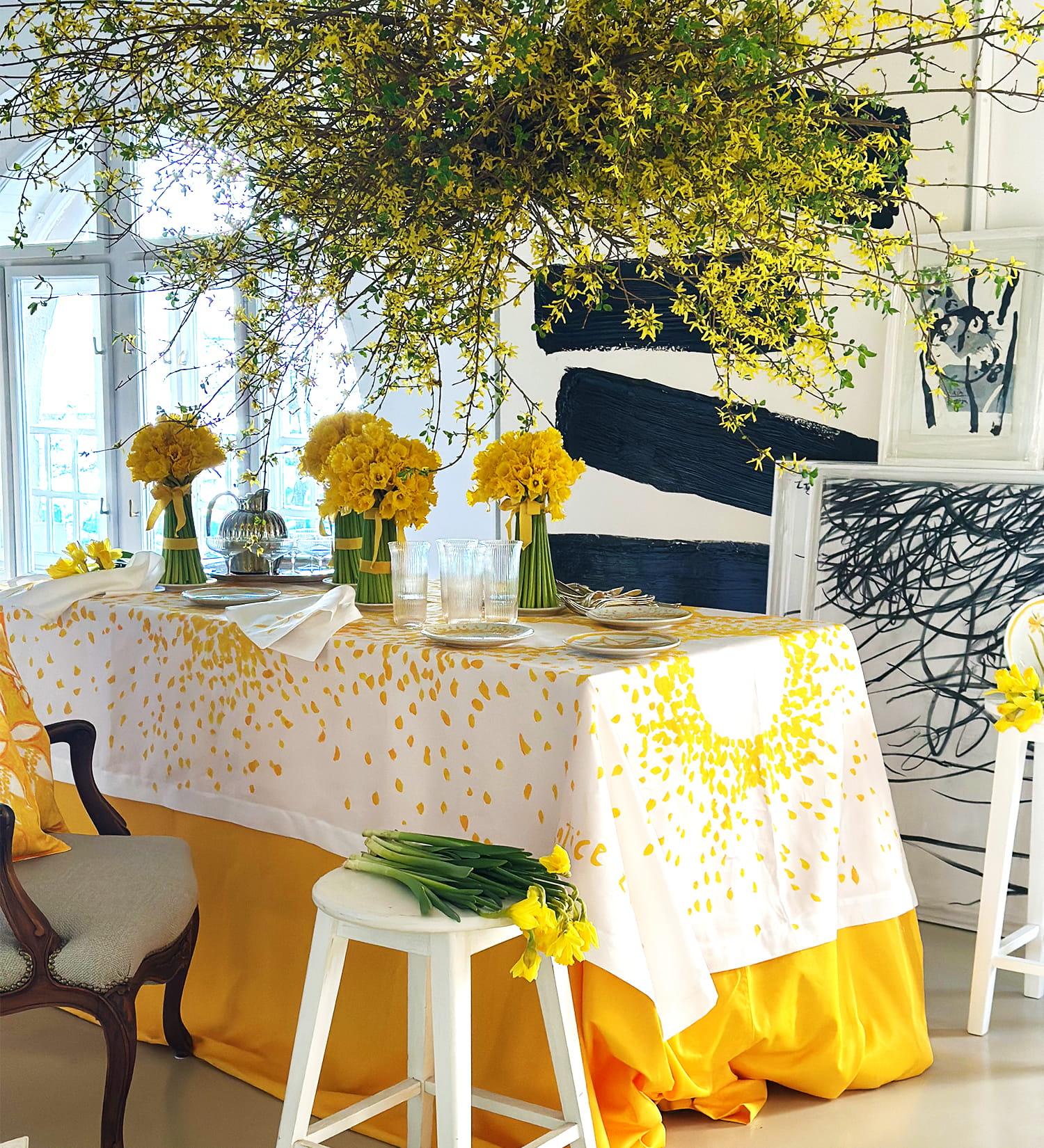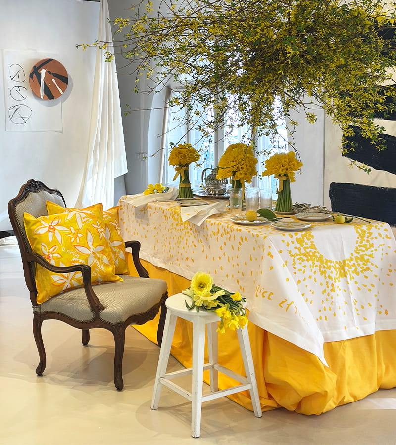 Zajedno stvaraju malu tekstilnu posvetu proljeću – onu koja nas podsjeća da se ljepota često krije u jednostavnim ritualima svakodnevice. Jer ponekad je za savršeni proljetni ugođaj dovoljno tek malo sunca… i stolnjak koji izgleda kao da je procvjetao.