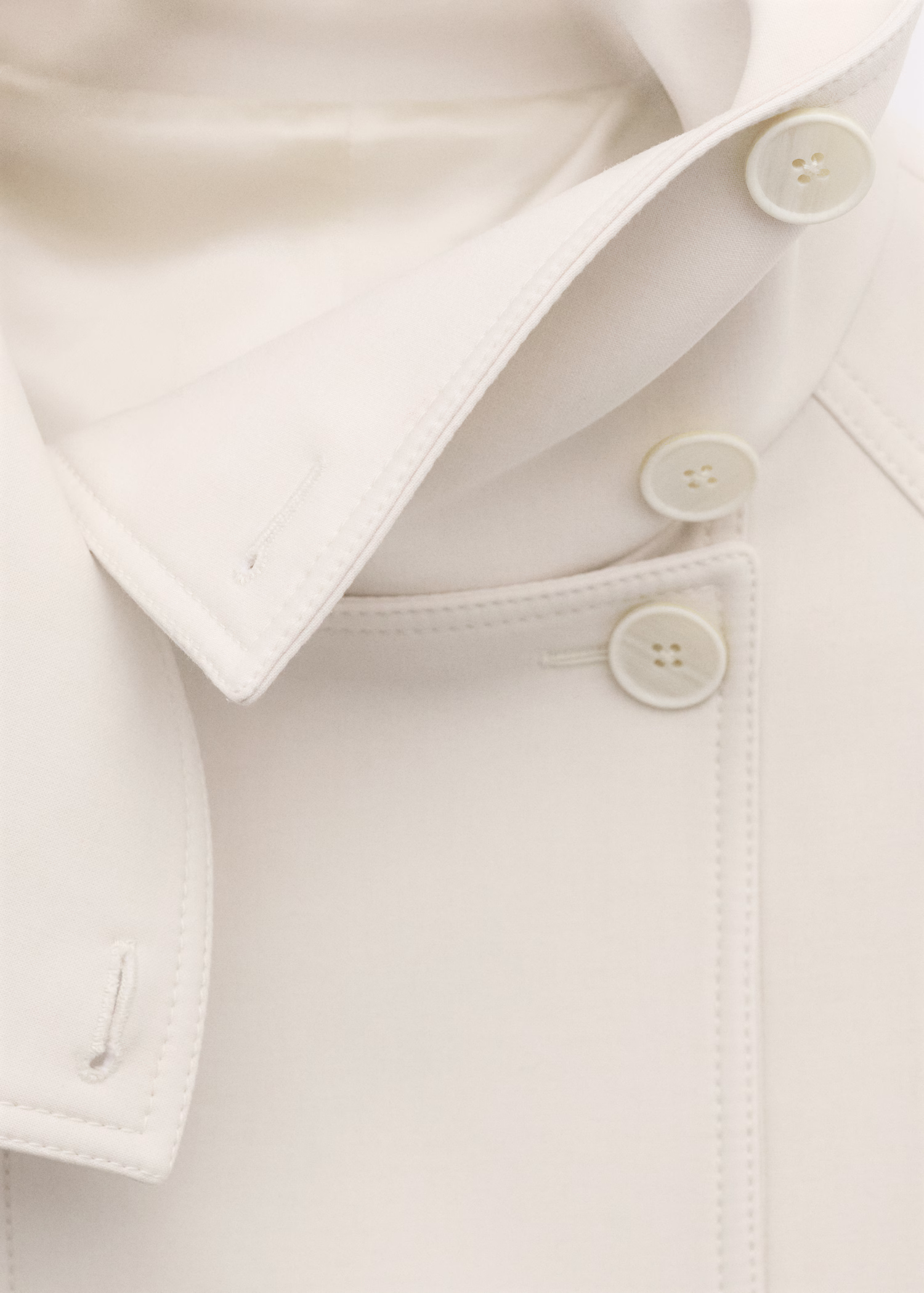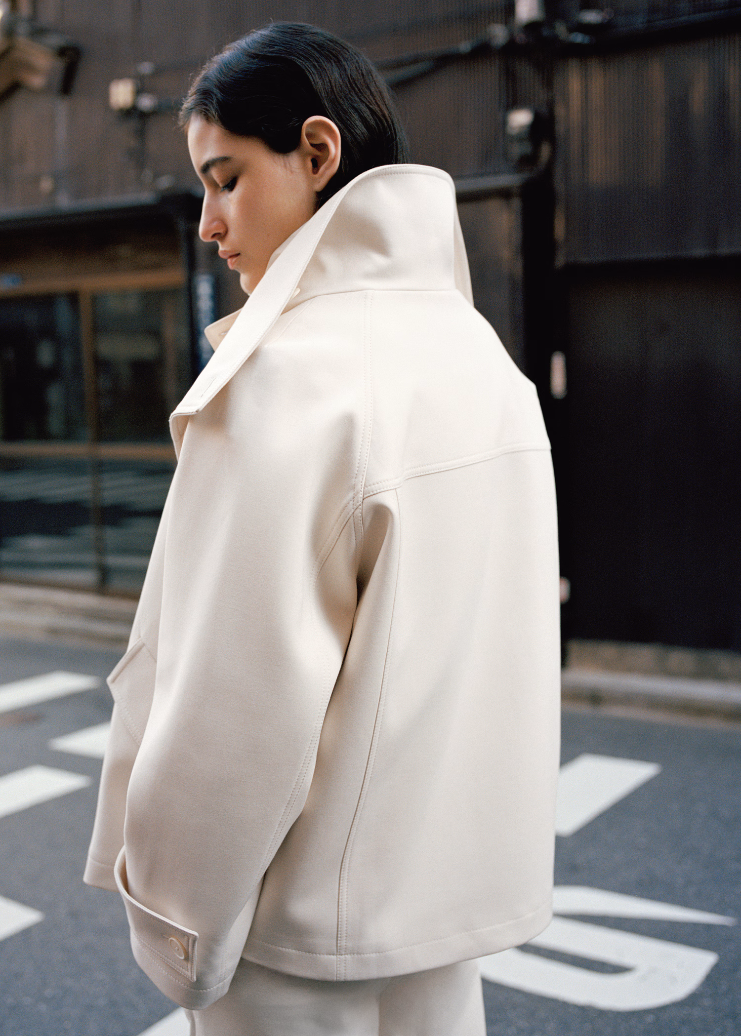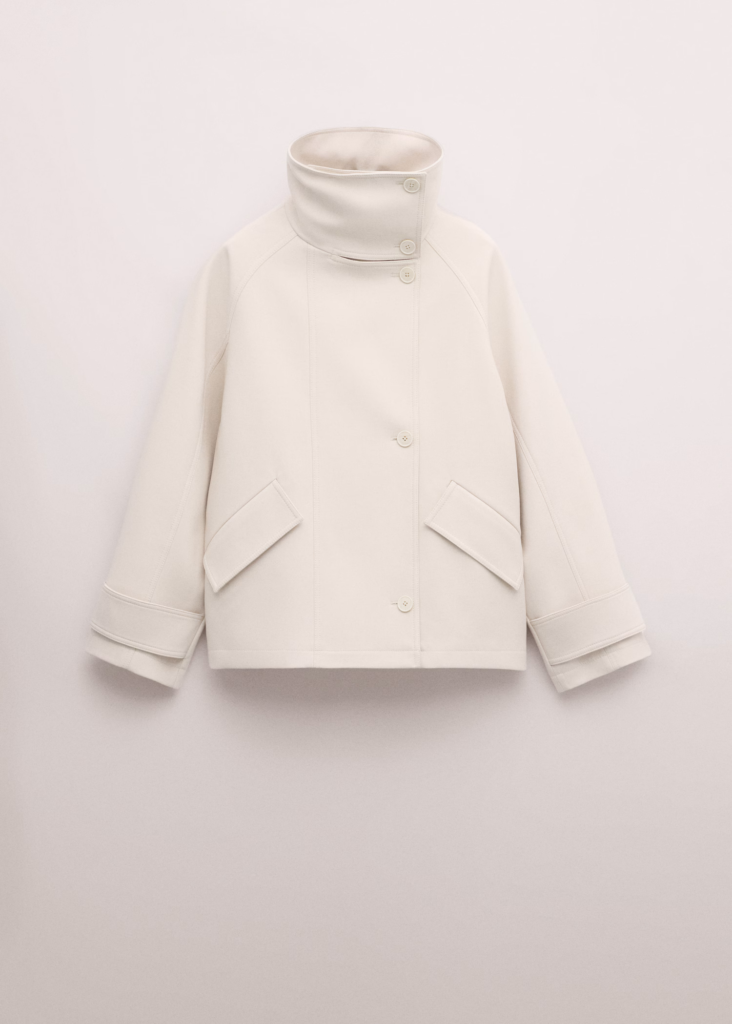 Riječ je o prekrasnoj parka jakni sa širokim podignutim ovratnikom u prljavobijeloj nijansi. Jakna je napravljena od mješavine vune, a sastoji se od dva bočna džepa s preklopom i dugim rukavima s omčama. Kopčanje je s prednje strane na gumbe i kroj joj je oversized.