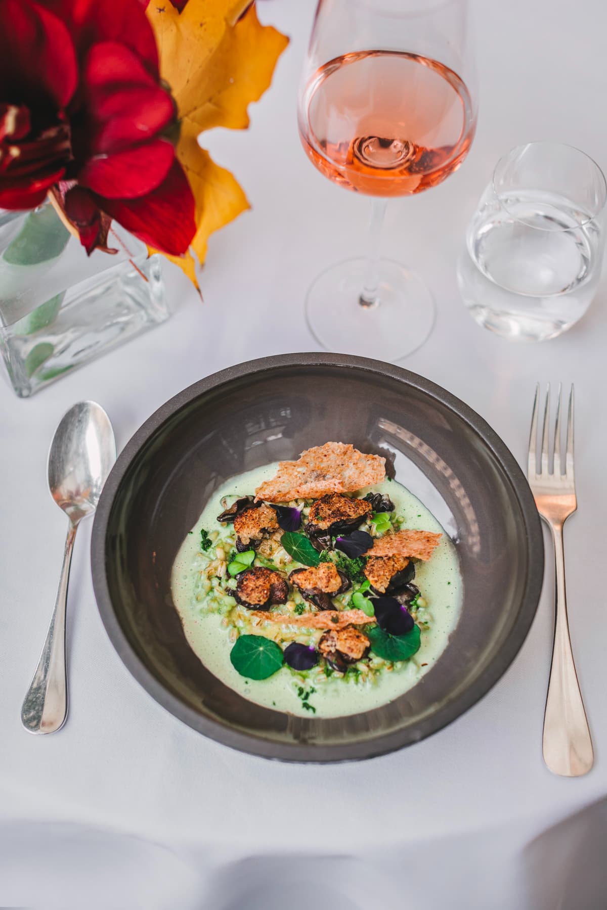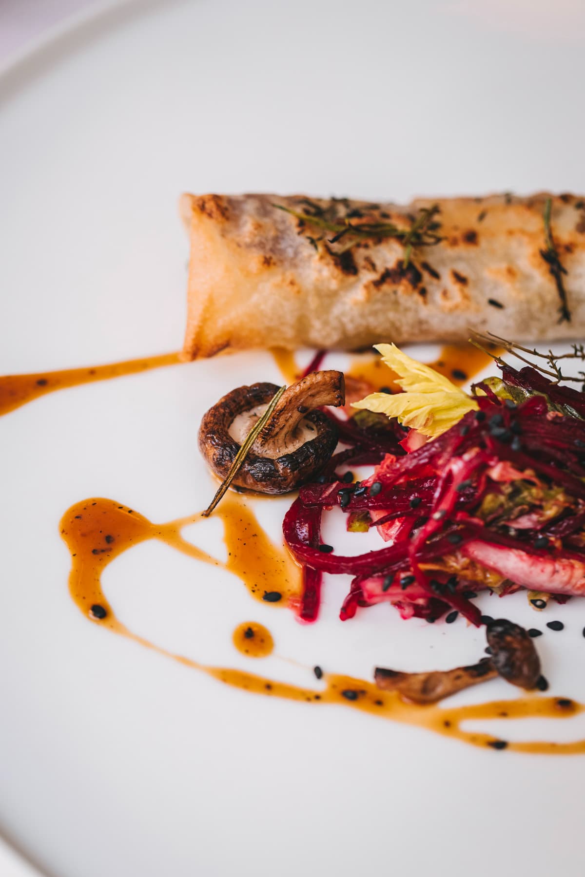 Dimljene kozice u kombinaciji s pekmezom od dunje i čilija zavodljivo otvaraju menu i odmah podižu očekivanja. Kroketi od vrganja donose modernu interpretaciju šumskih okusa, obogaćenu pestom od suncokretovih sjemenki i timijanom te hrskavim crumbleom od čvaraka, koji jelu daje neočekivanu dubinu.