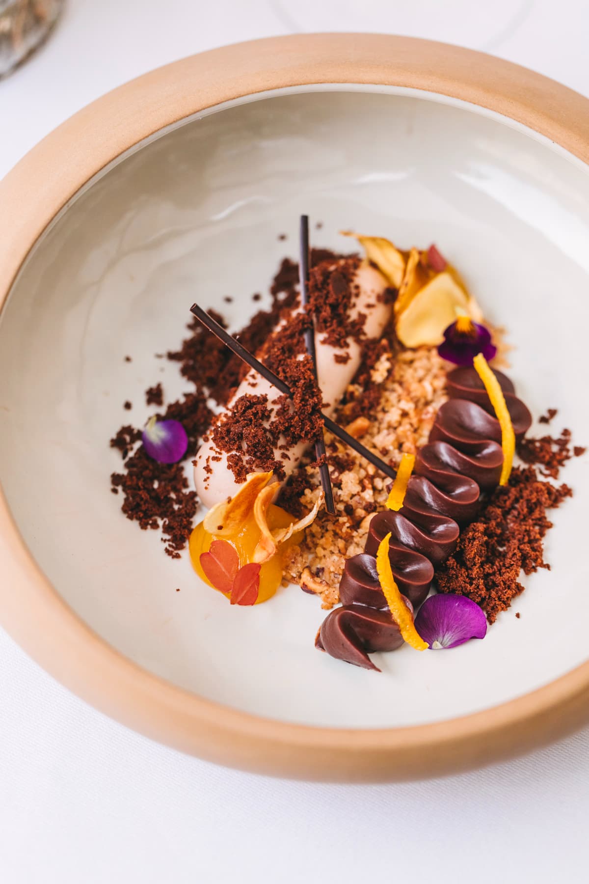 Za kraj — tri promišljena i zavodljiva slatka trenutka. Mousse od oraha s makovim biskvitom, kremom od skute, karameliziranim jabukama i hrskavim orasima donosi savršenu jesensku harmoniju okusa. Za slojevit i intenzivan doživljaj tu je topli brownie od banane i kave s tahinijem, karameliziranim bananama i crumbleom od smeđeg maslaca. A za nešto laganije, ali ledeno: semifreddo s kupinom, ganacheom od kupina, spužvom od lješnjaka i tonke te finim sirupom od bosiljka — desert koji će vas zasigurno osvojiti.