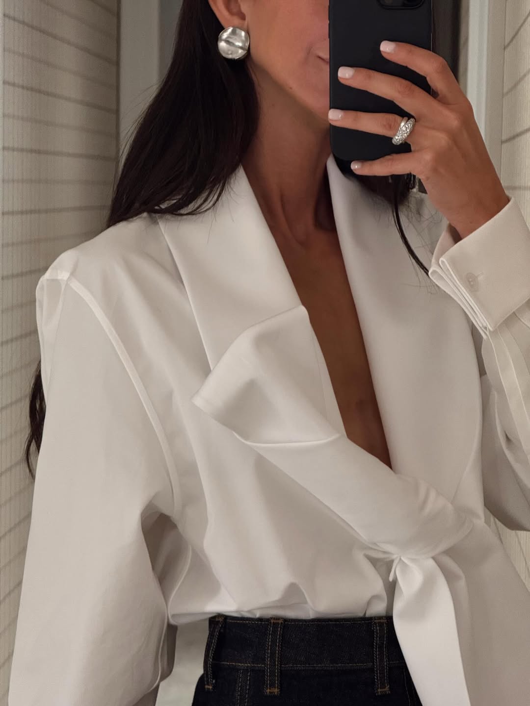 Ova košulja nije samo još jedna bijela košulja u nizu. Njezin prepoznatljiv detalj – duga vrpca oko vrata koja se može vezati u mašnu ili nositi opušteno – daje joj potpuno novu dimenziju. Upravo taj element stvara savršeni balans između ženstvenosti i nonšalantnog stila.