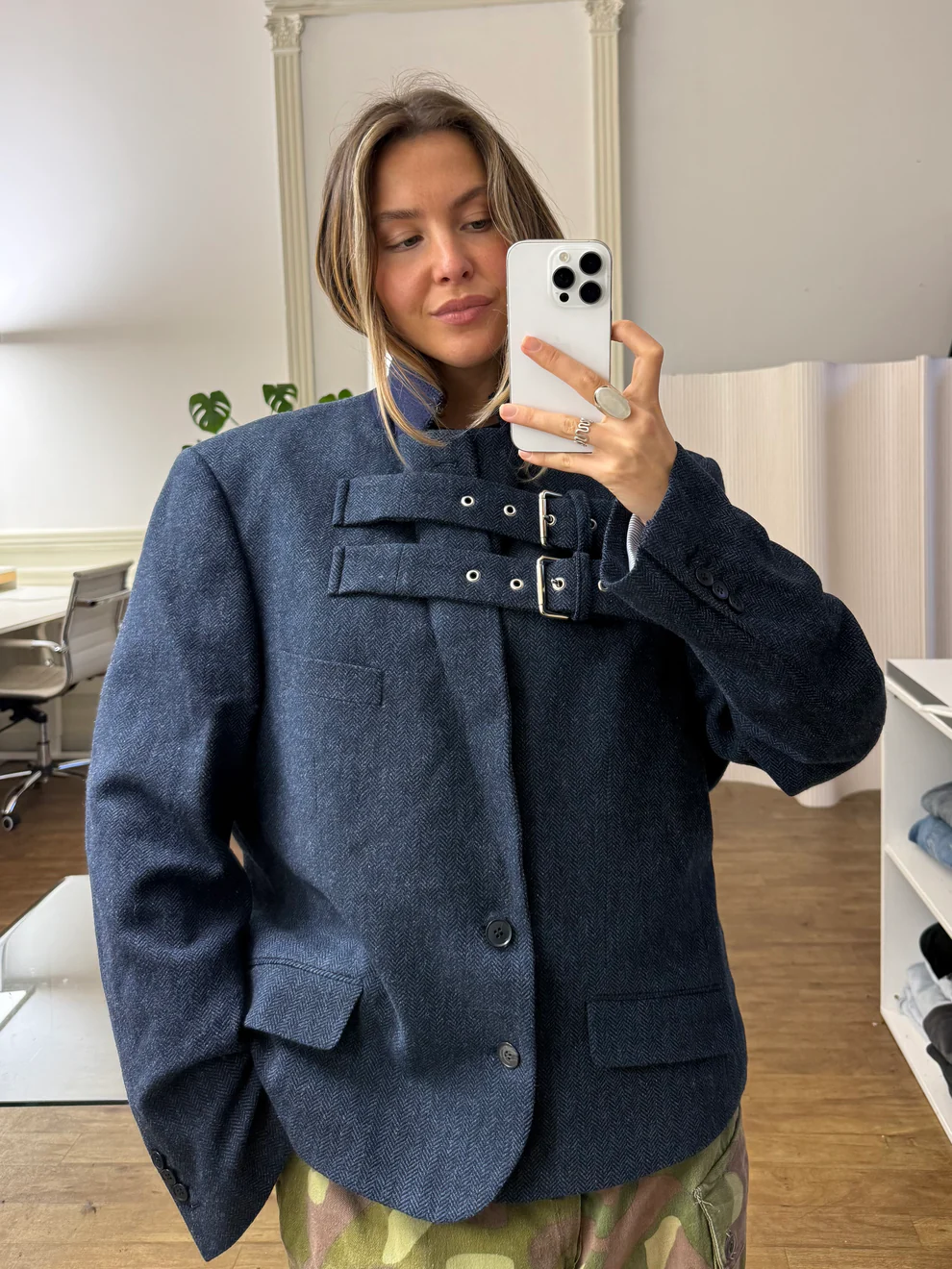 Today with @atelier.a.base at the @Modefabriek in the buckle blazer jackets #fyp #bucklejacket #ootd #upcycledvintage #blazerjacket