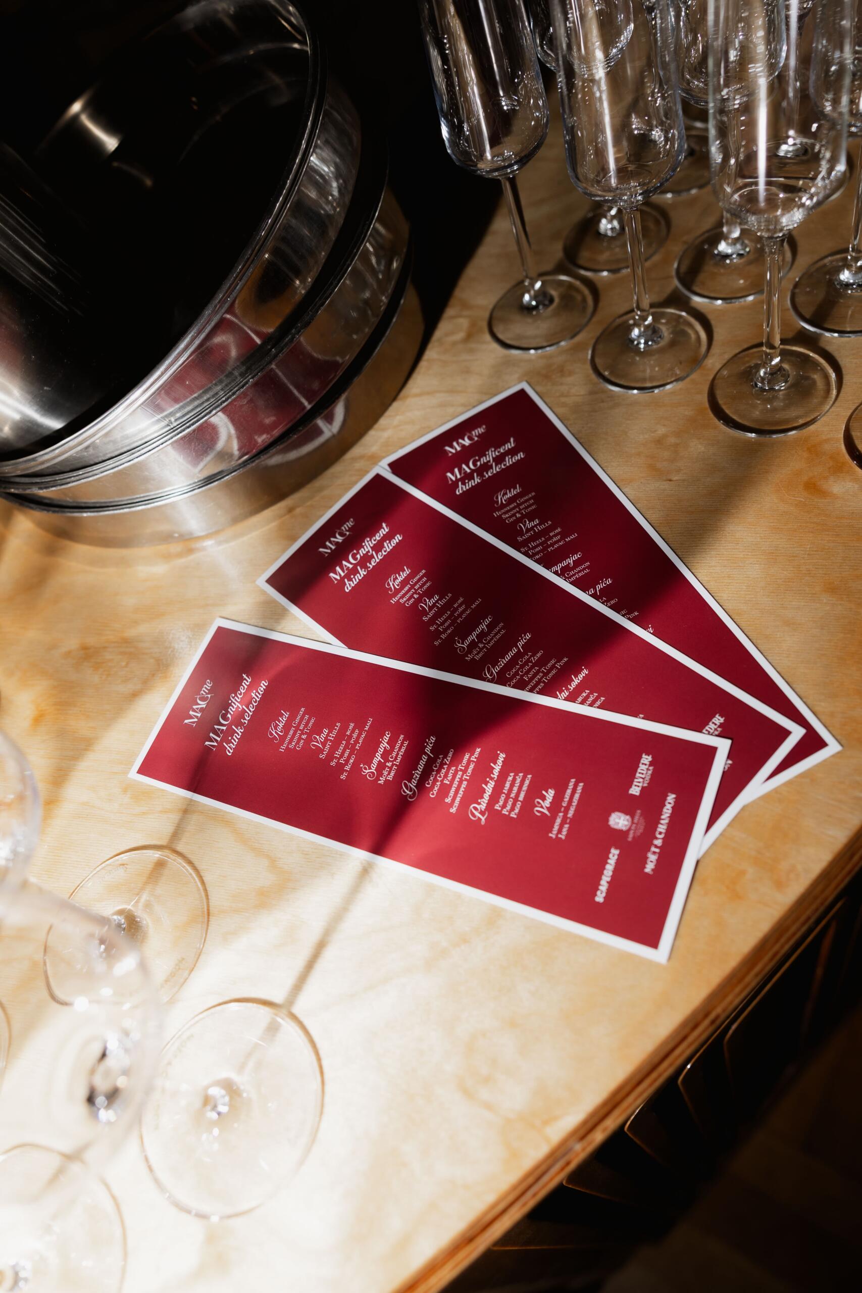 Da naši gosti ne ostanu žedni pobrinula se Miva galerija vina – dobru atmosferu dizao je i zvuka otvaranja boce šampanjca Moët & Chandon, a nazdravljali smo i s votkom Belvedere, ginom Scapegrace i konjakom Hennessy. Vinarija Saint Hills pobrinula se da uzvanici mogu uživati u vrhunskim hrvatskim vinima St. Heels roseu, Posh pošipu i St. Roko Plavcu malom.