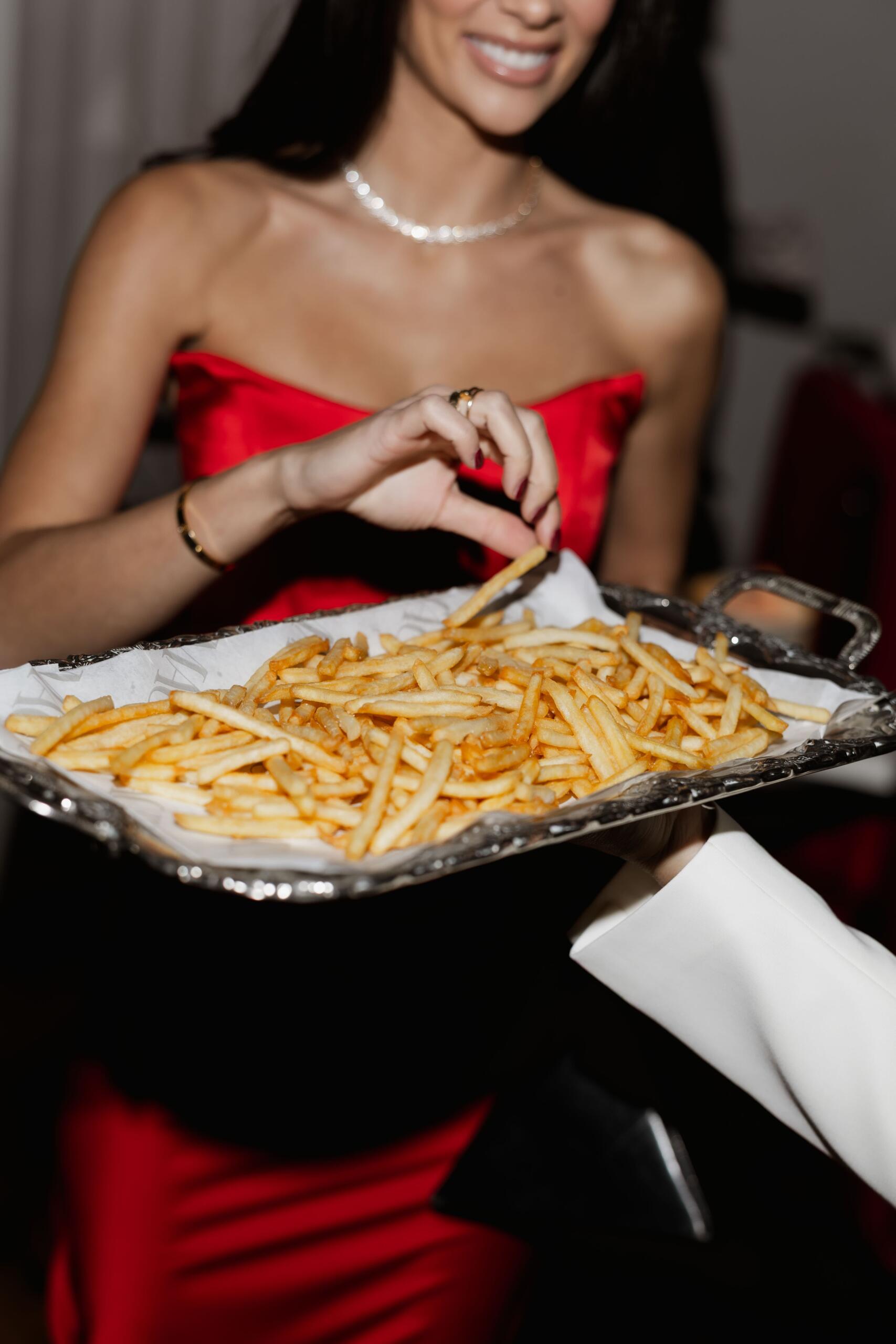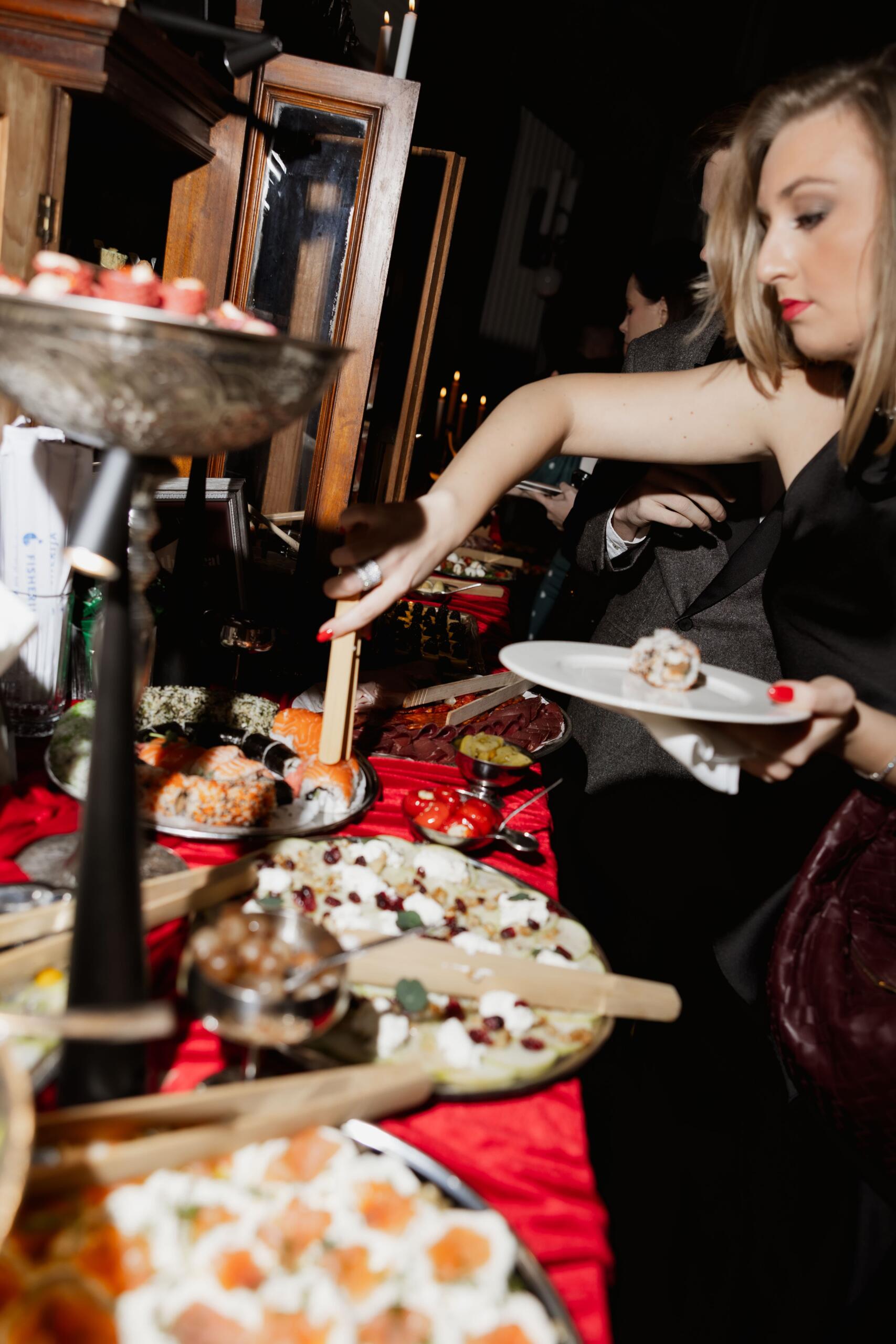Pravi spektakl priredio je Catering Majetić – beef tartar od The Meat mesa radio se pred gostima, pršut DOBRO bio je serviran na srebrnim pladnjevima sa zelenim i crnim kalamata maslinama, služili su se slani eclairi s kavijarom, kao i Jakobove kapice iz Fisherije pripremljene na buzaru, a goste su oduševile i svježe pečene pizze, mini burgeri i mac & cheese bowls.