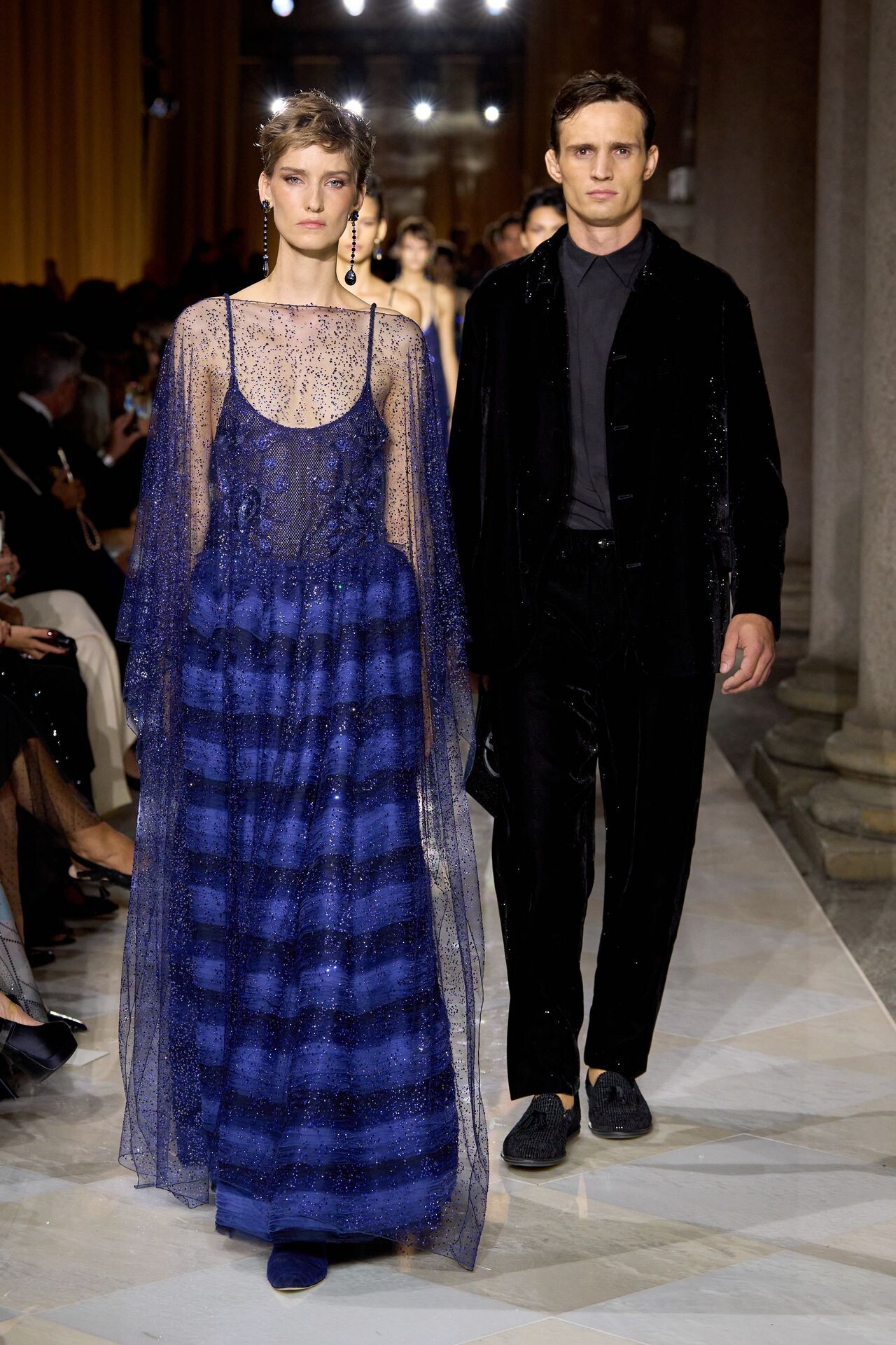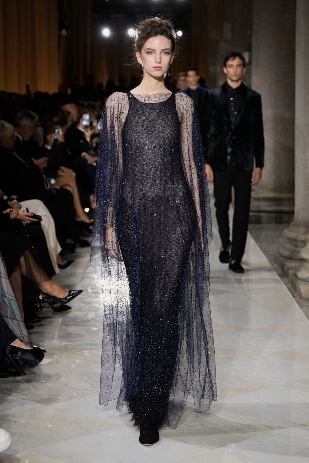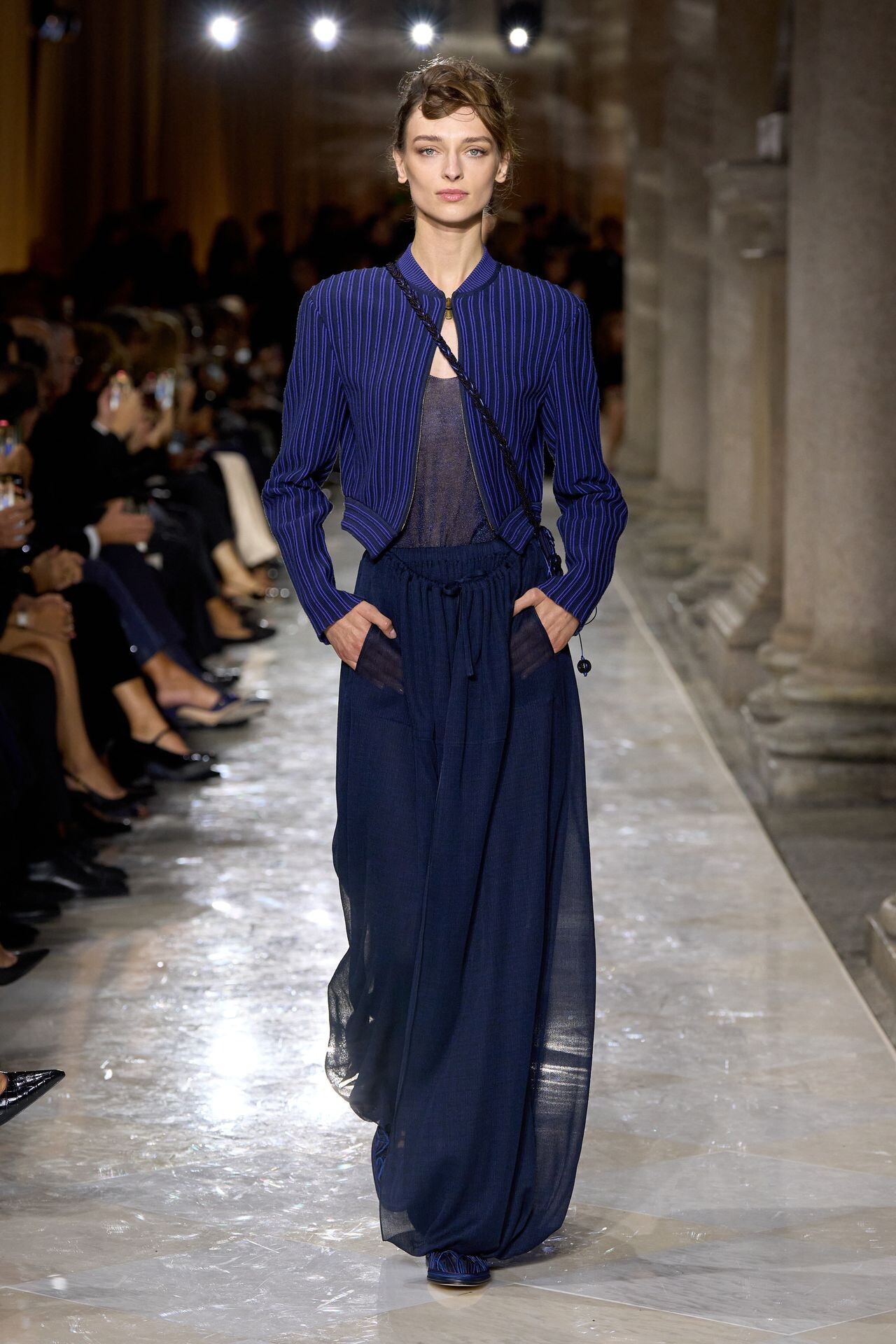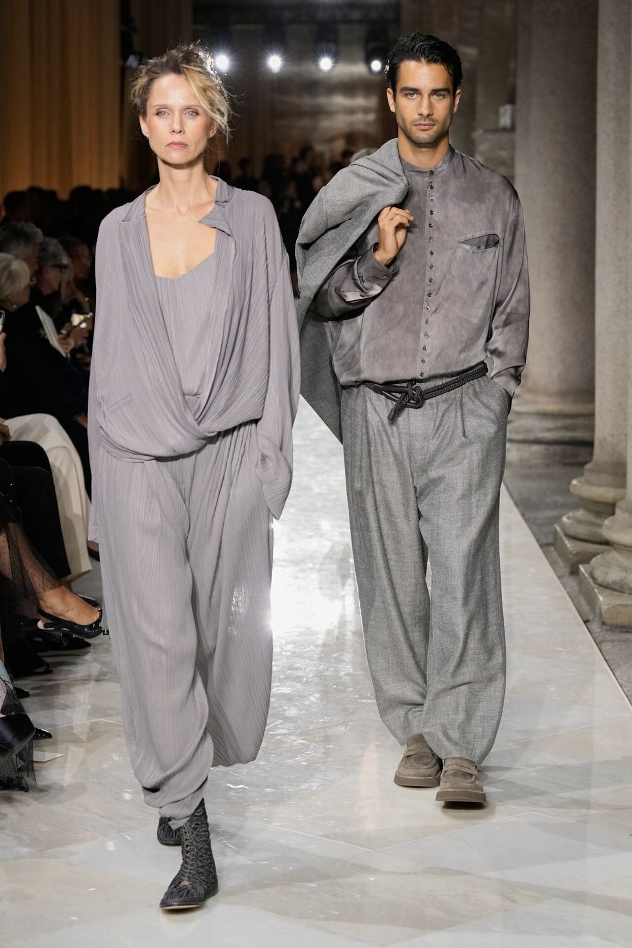 Sinoć su se ipak, gosti okupili u Pinacoteci di Breri kako bi odali počast i gledali posljednju reviju koju je osmislio dizajner. Mjesto održavanja imalo je posebno značenje; tek nekoliko ulica dalje nalazi se Palazzo Orsini u ulici Borgonuovo, dugogodišnje sjedište Armani grupe i dizajnerova rezidencija. Za tu prigodu, dvorišni prostor muzeja bio je osvijetljen stotinama lampiona, dok su se na pisti izmjenjivali brojni muški i ženski lookovi koji po mnogočemu podsjećaju na arhivske komade talijanske kuće. Uz pratnju klavira, kolekcija je predstavljena kao oda dvama mjestima najvažnijima za Armanija – Milanu i Pantelleriji, vulkanskom otoku u blizini Sicilije gdje je dizajner provodio ljeta.