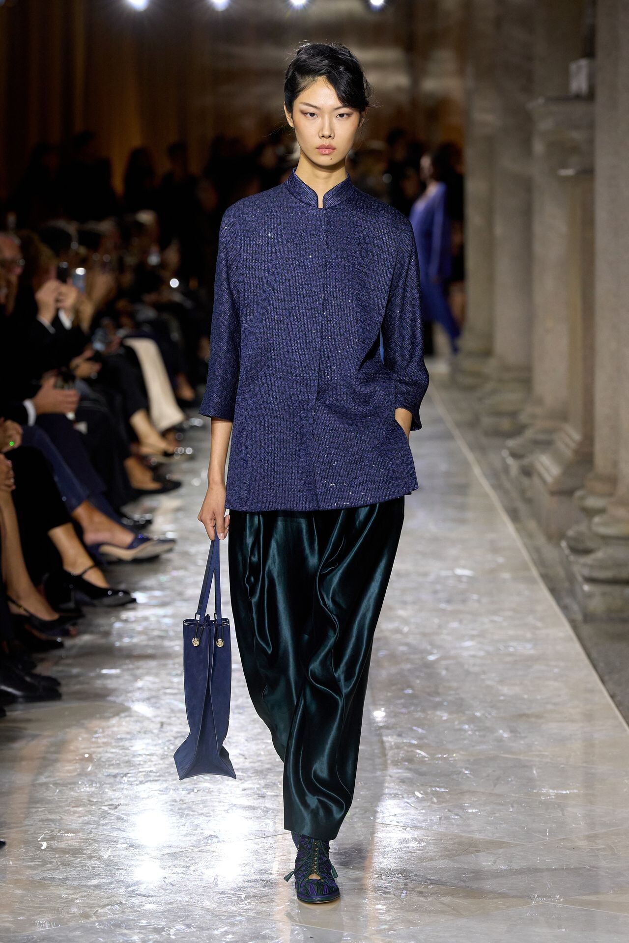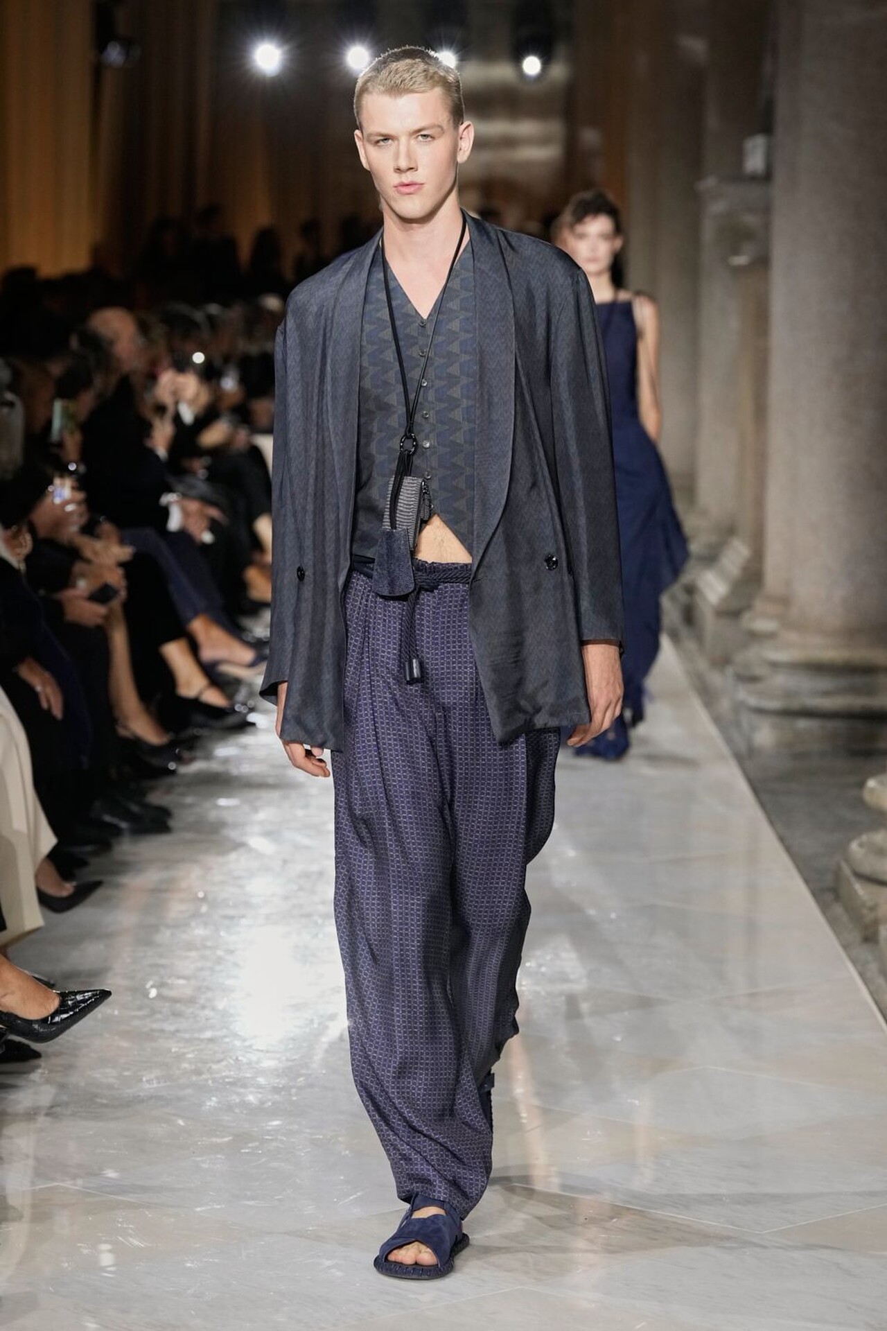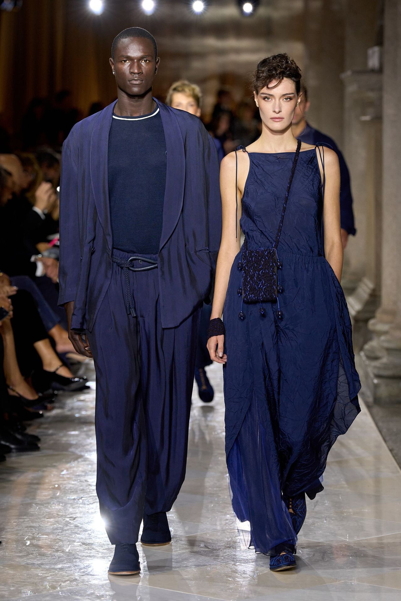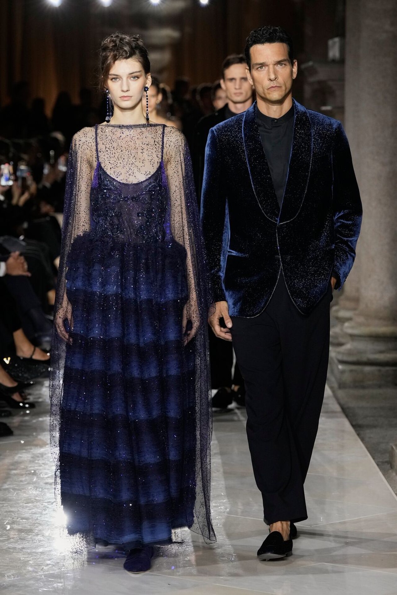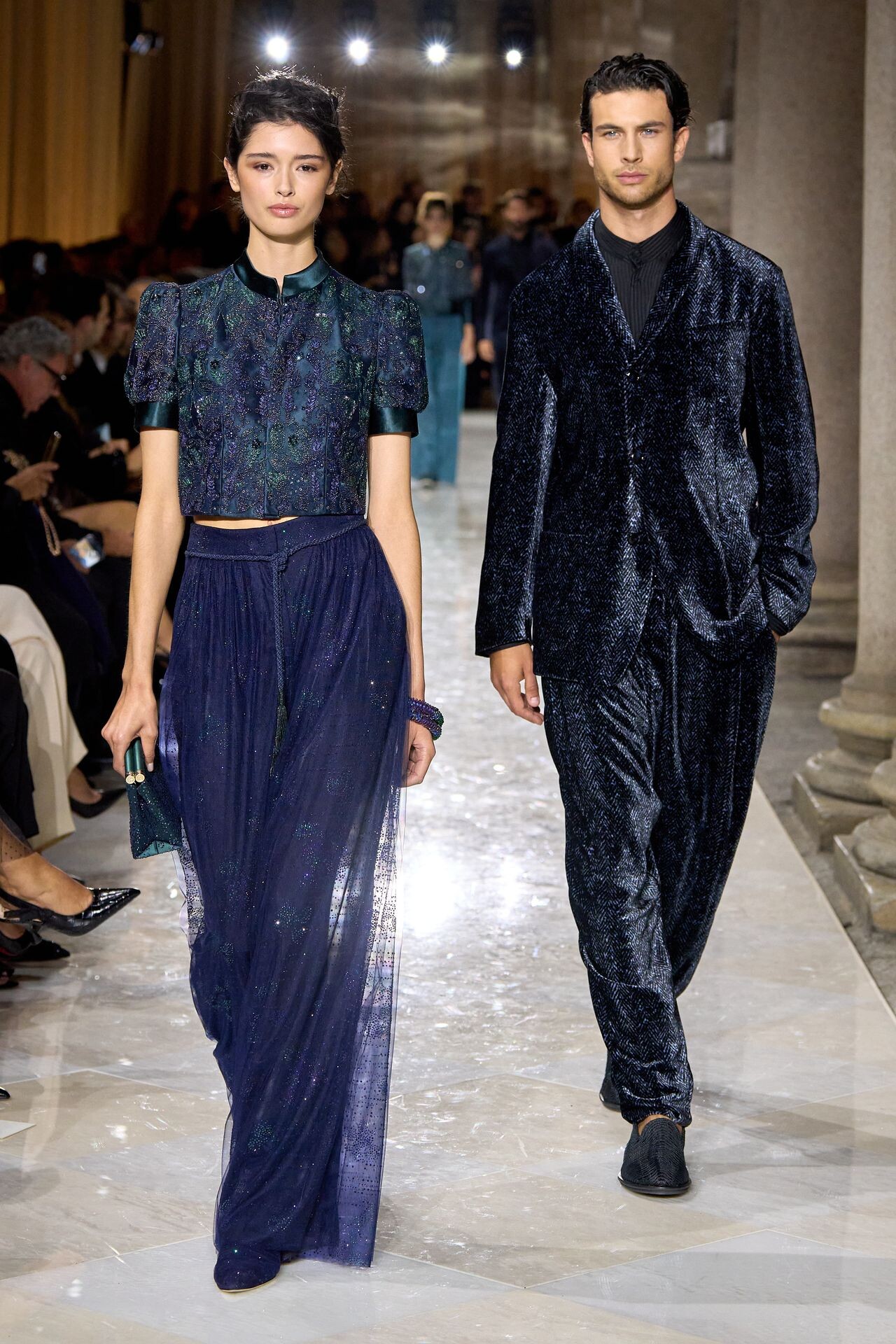 Sinoć su se ipak, gosti okupili u Pinacoteci di Breri kako bi odali počast i gledali posljednju reviju koju je osmislio dizajner. Mjesto održavanja imalo je posebno značenje; tek nekoliko ulica dalje nalazi se Palazzo Orsini u ulici Borgonuovo, dugogodišnje sjedište Armani grupe i dizajnerova rezidencija. Za tu prigodu, dvorišni prostor muzeja bio je osvijetljen stotinama lampiona, dok su se na pisti izmjenjivali brojni muški i ženski lookovi koji po mnogočemu podsjećaju na arhivske komade talijanske kuće. Uz pratnju klavira, kolekcija je predstavljena kao oda dvama mjestima najvažnijima za Armanija – Milanu i Pantelleriji, vulkanskom otoku u blizini Sicilije gdje je dizajner provodio ljeta.