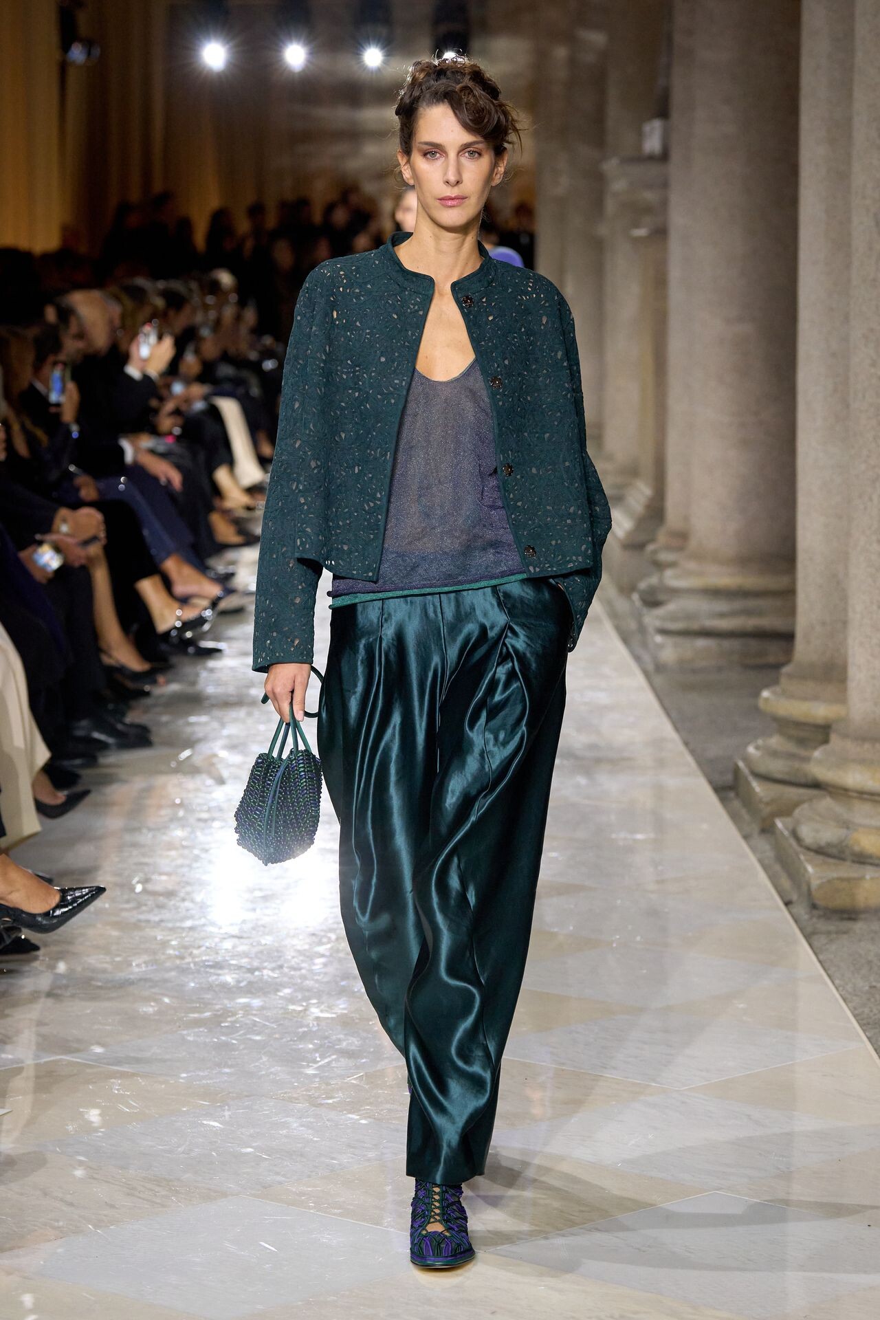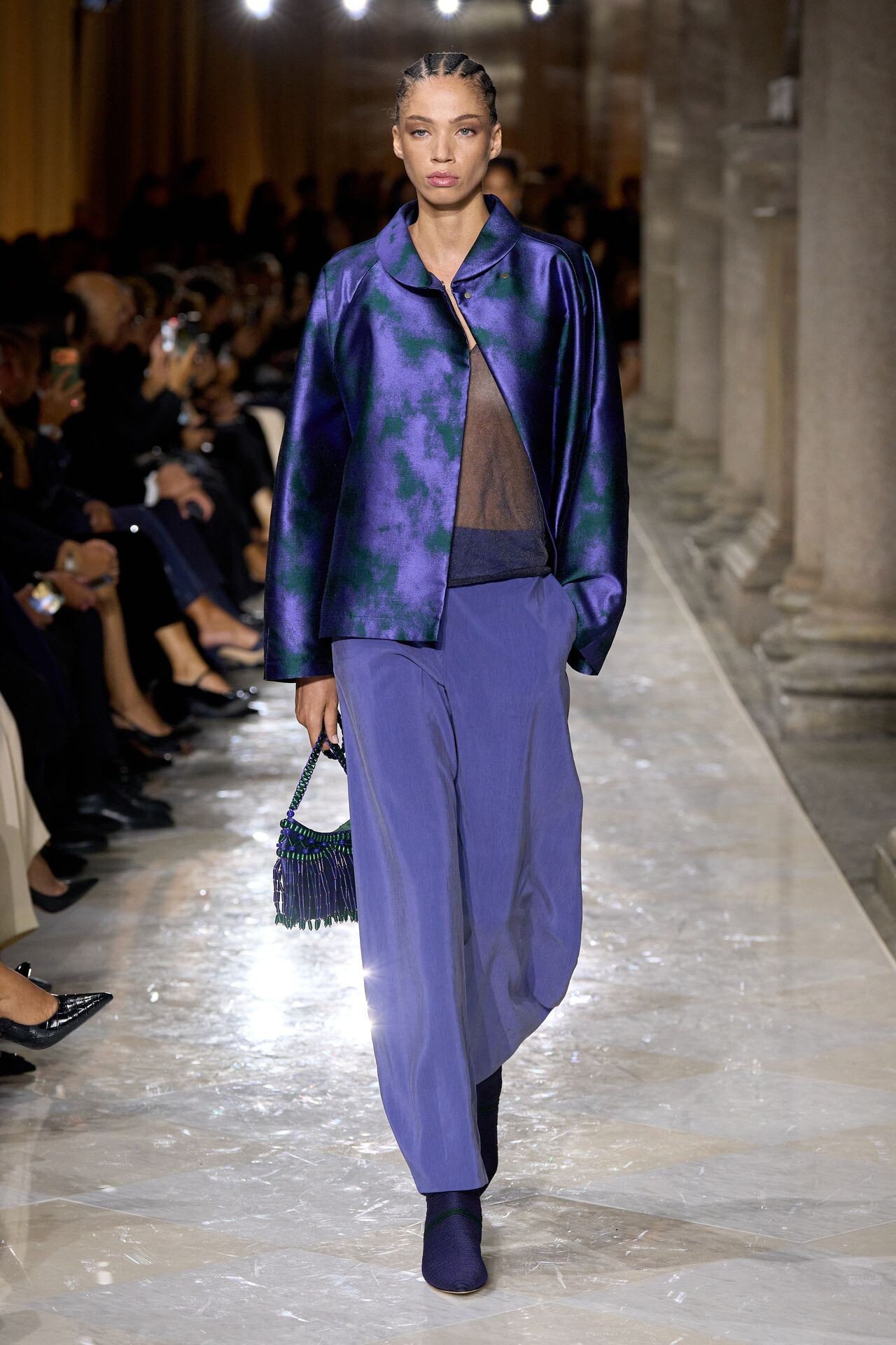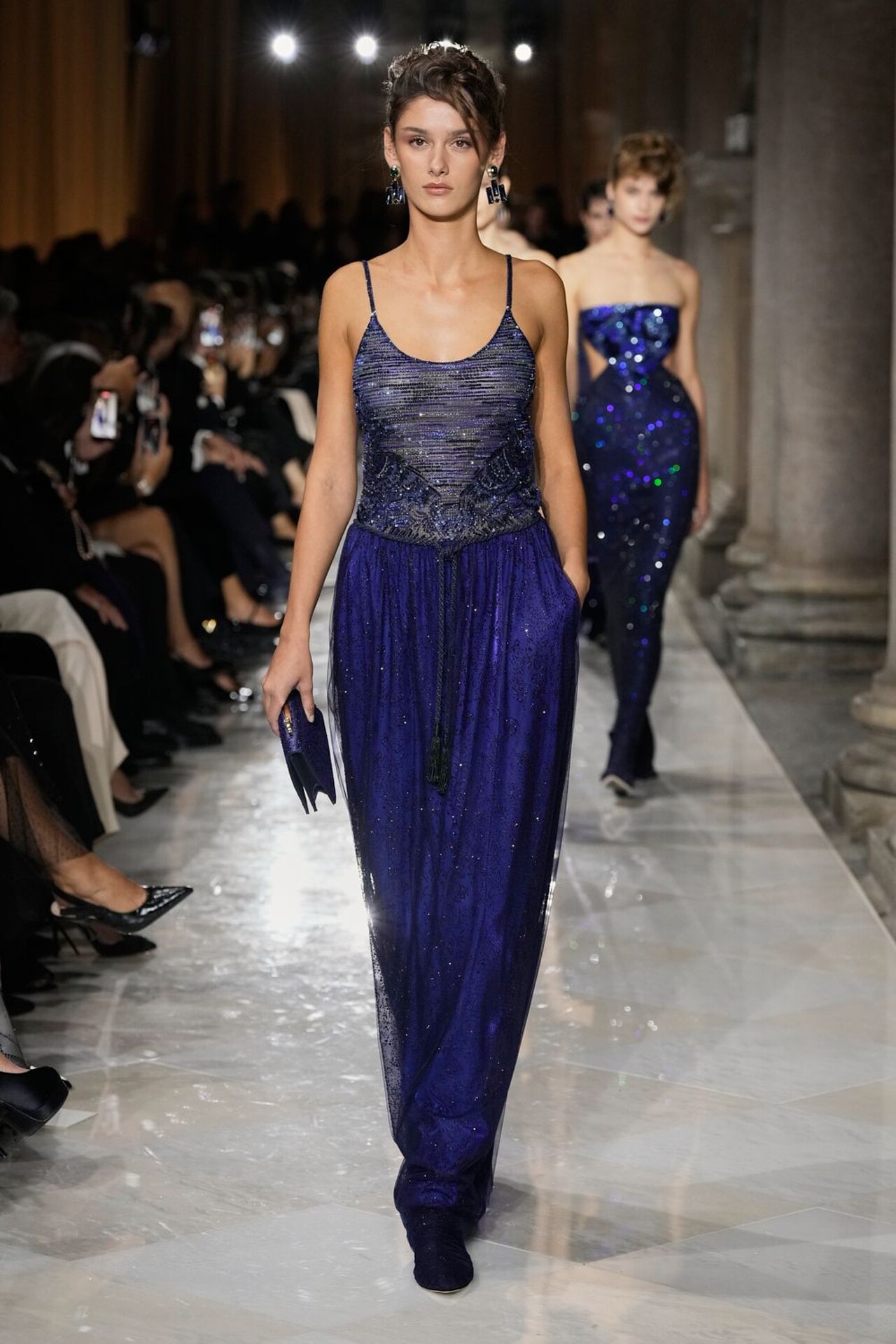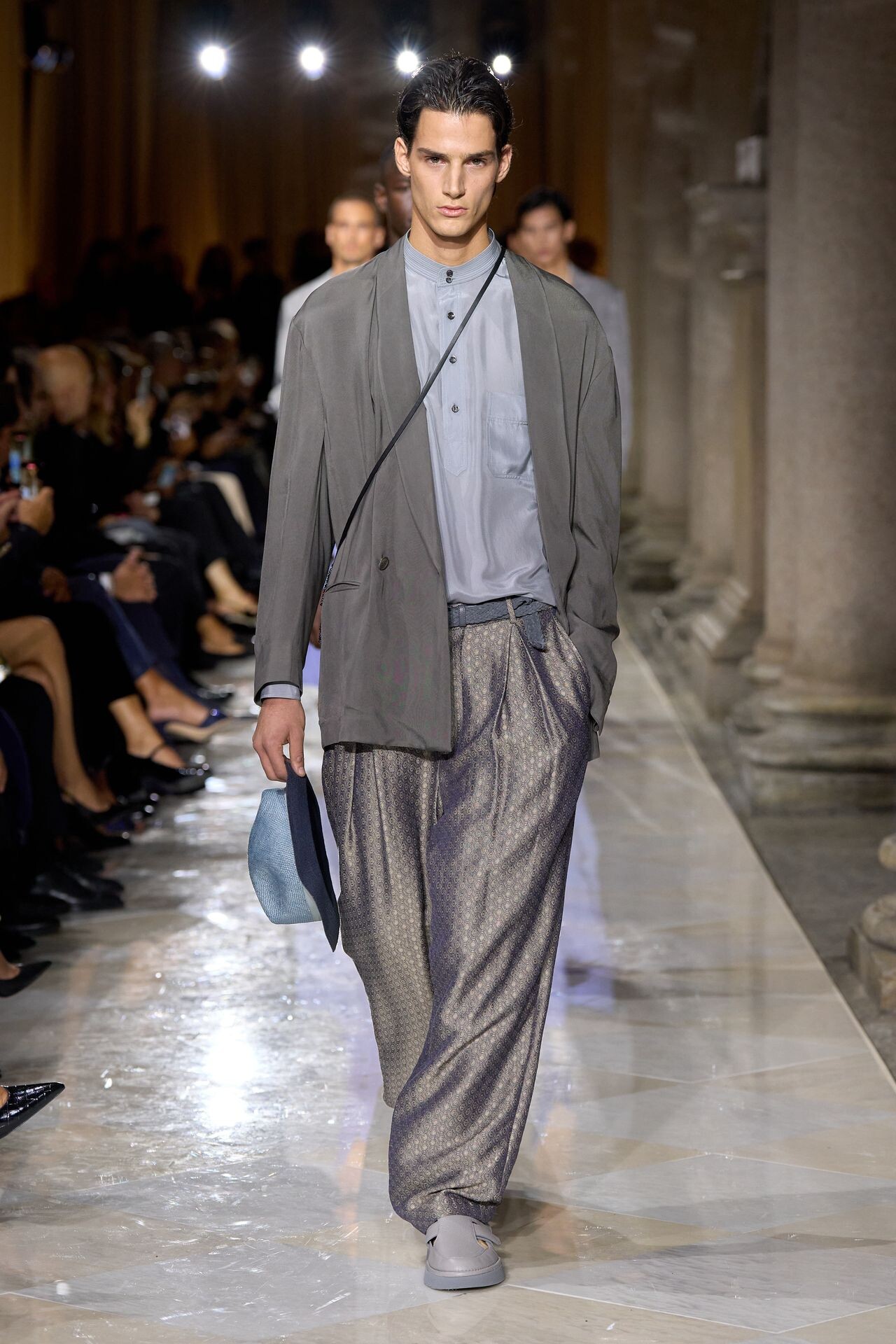 Sinoć su se ipak, gosti okupili u Pinacoteci di Breri kako bi odali počast i gledali posljednju reviju koju je osmislio dizajner. Mjesto održavanja imalo je posebno značenje; tek nekoliko ulica dalje nalazi se Palazzo Orsini u ulici Borgonuovo, dugogodišnje sjedište Armani grupe i dizajnerova rezidencija. Za tu prigodu, dvorišni prostor muzeja bio je osvijetljen stotinama lampiona, dok su se na pisti izmjenjivali brojni muški i ženski lookovi koji po mnogočemu podsjećaju na arhivske komade talijanske kuće. Uz pratnju klavira, kolekcija je predstavljena kao oda dvama mjestima najvažnijima za Armanija – Milanu i Pantelleriji, vulkanskom otoku u blizini Sicilije gdje je dizajner provodio ljeta.