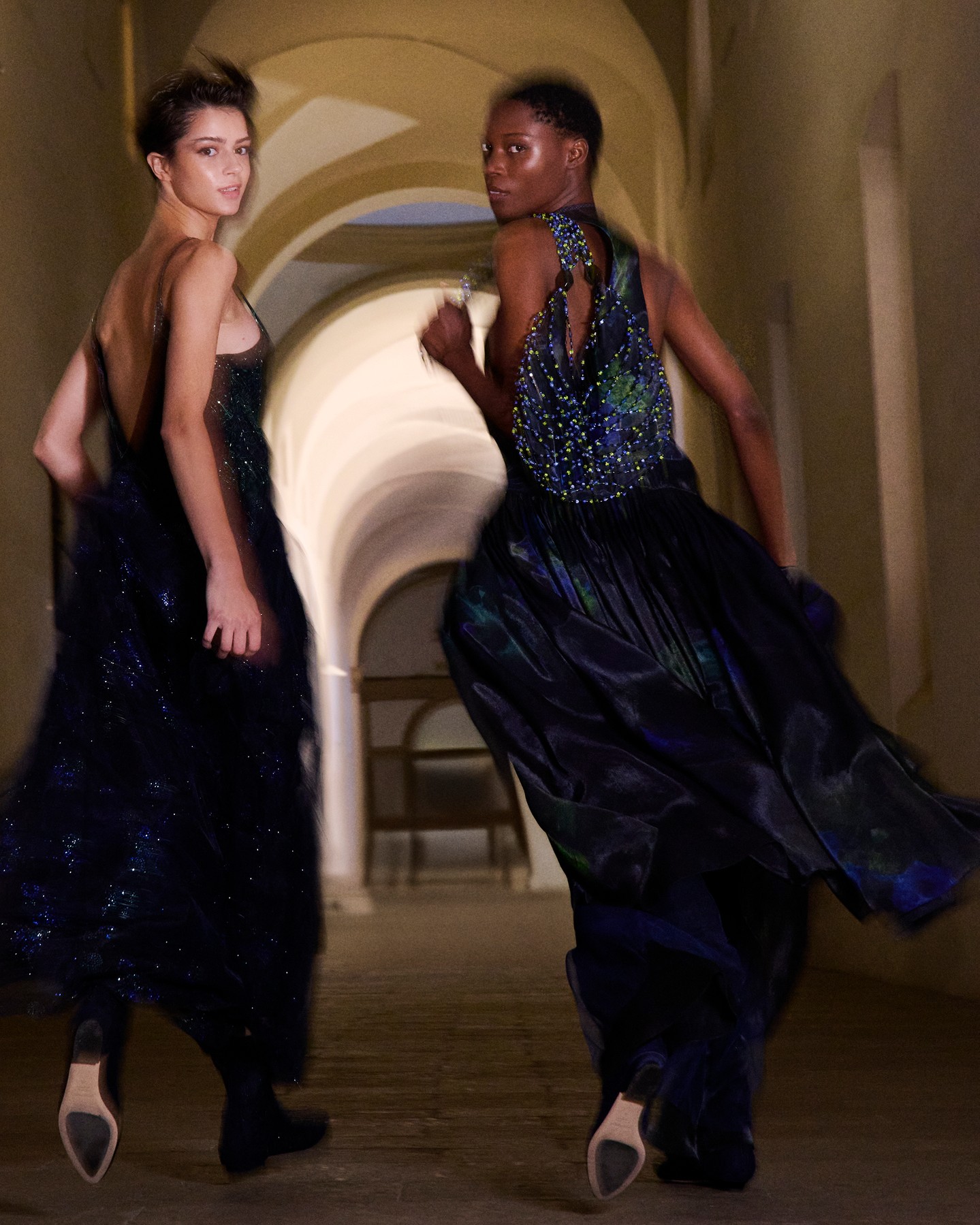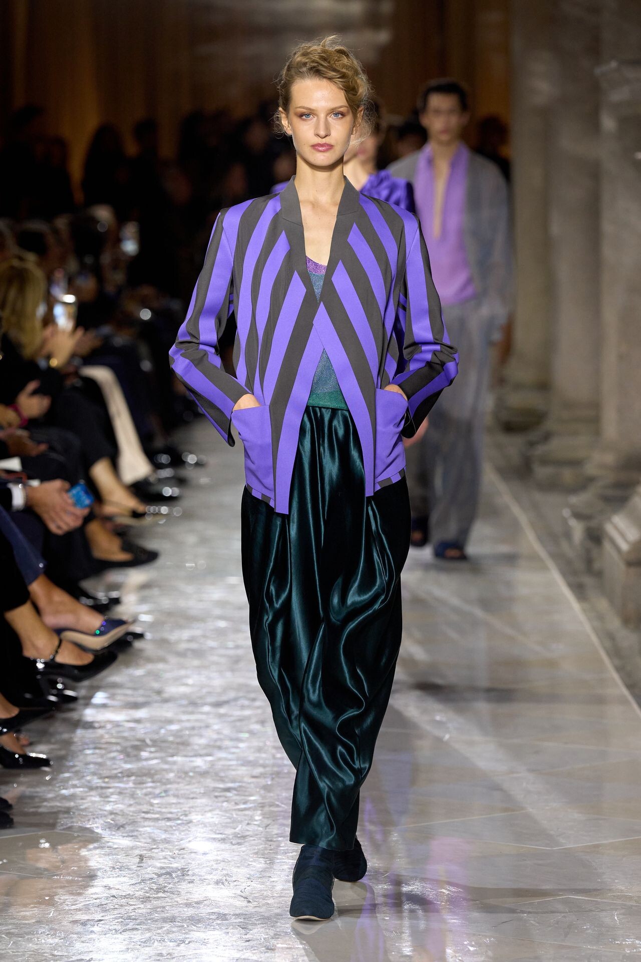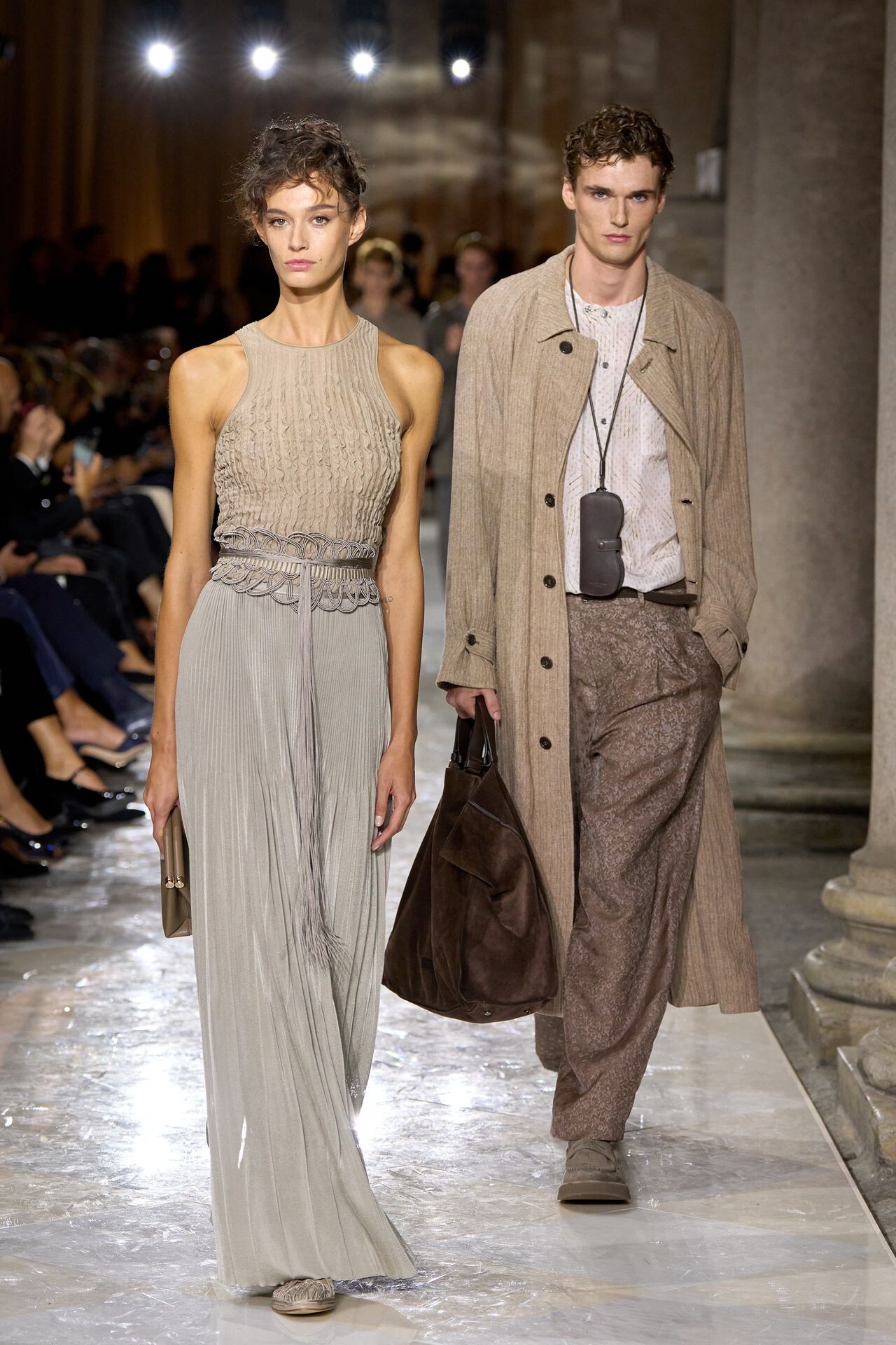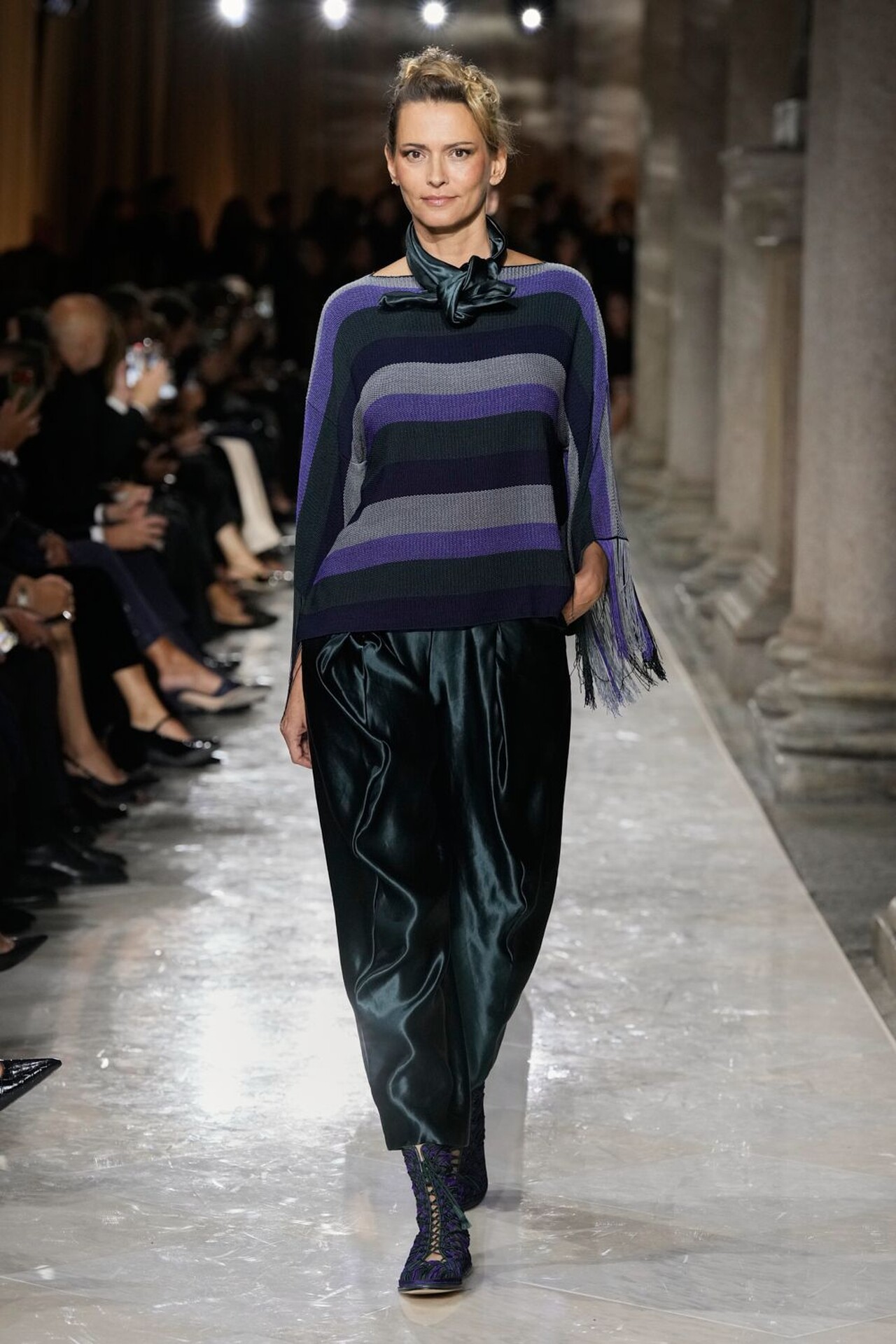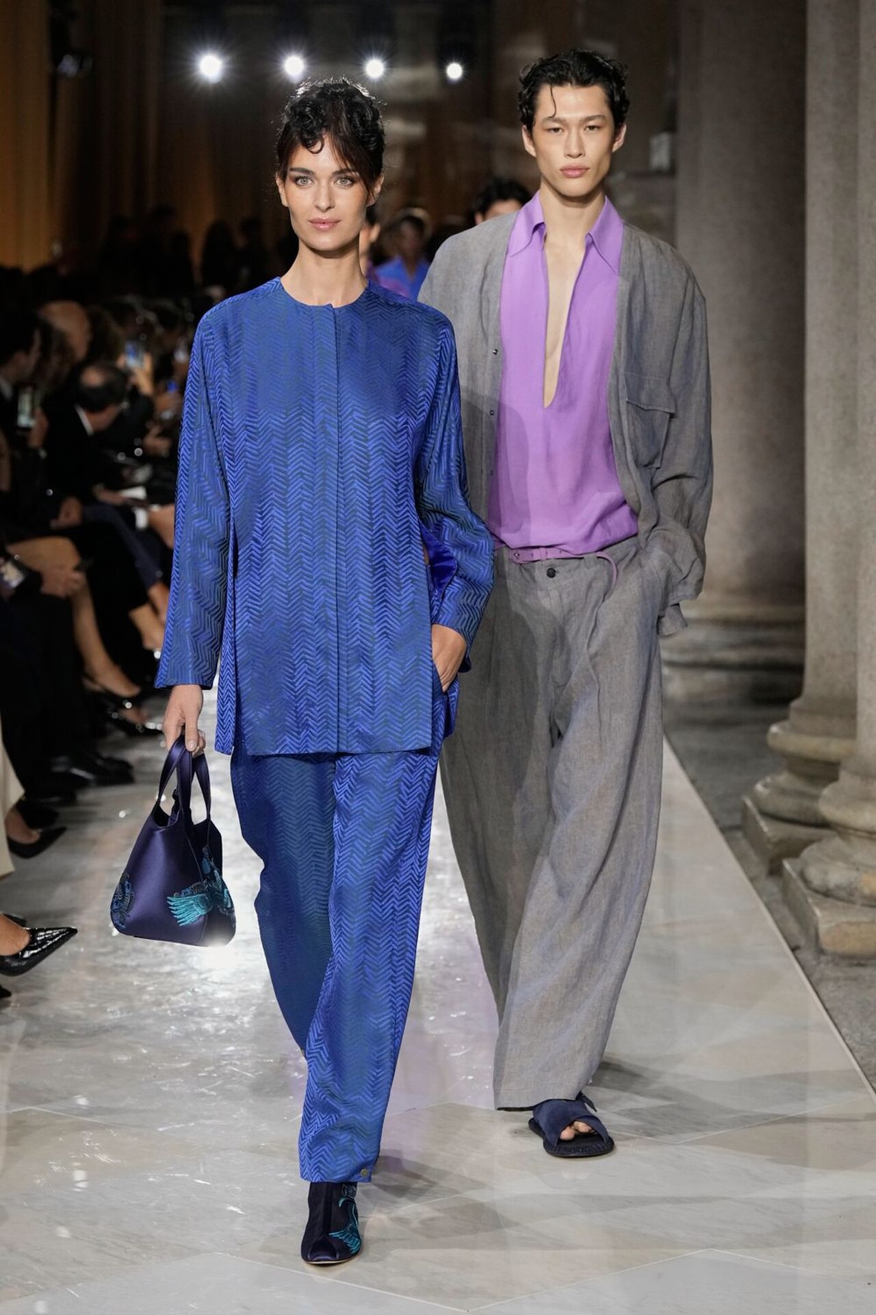 Sinoć su se ipak, gosti okupili u Pinacoteci di Breri kako bi odali počast i gledali posljednju reviju koju je osmislio dizajner. Mjesto održavanja imalo je posebno značenje; tek nekoliko ulica dalje nalazi se Palazzo Orsini u ulici Borgonuovo, dugogodišnje sjedište Armani grupe i dizajnerova rezidencija. Za tu prigodu, dvorišni prostor muzeja bio je osvijetljen stotinama lampiona, dok su se na pisti izmjenjivali brojni muški i ženski lookovi koji po mnogočemu podsjećaju na arhivske komade talijanske kuće. Uz pratnju klavira, kolekcija je predstavljena kao oda dvama mjestima najvažnijima za Armanija – Milanu i Pantelleriji, vulkanskom otoku u blizini Sicilije gdje je dizajner provodio ljeta.