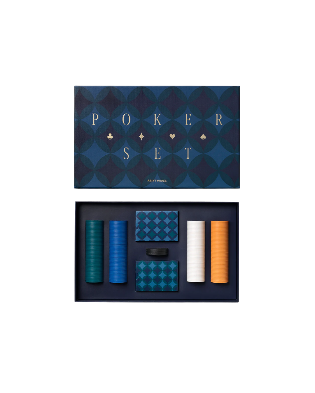 Ako ste u potrazi za poklonom koji savršeno balansira eleganciju i zabavu, onda je set za poker brenda Printworks idealan! Ovaj set nije samo igra, nego je i upečatljiv dizajnerski komad koji će se savršeno uklopiti u interijer – njegova elegantna kutija s modernim uzorkom sadrži sve što je potrebno za večer pokera koji možete igrati u dvoje, a bit će idealan komad i za večernje druženje s prijateljima.