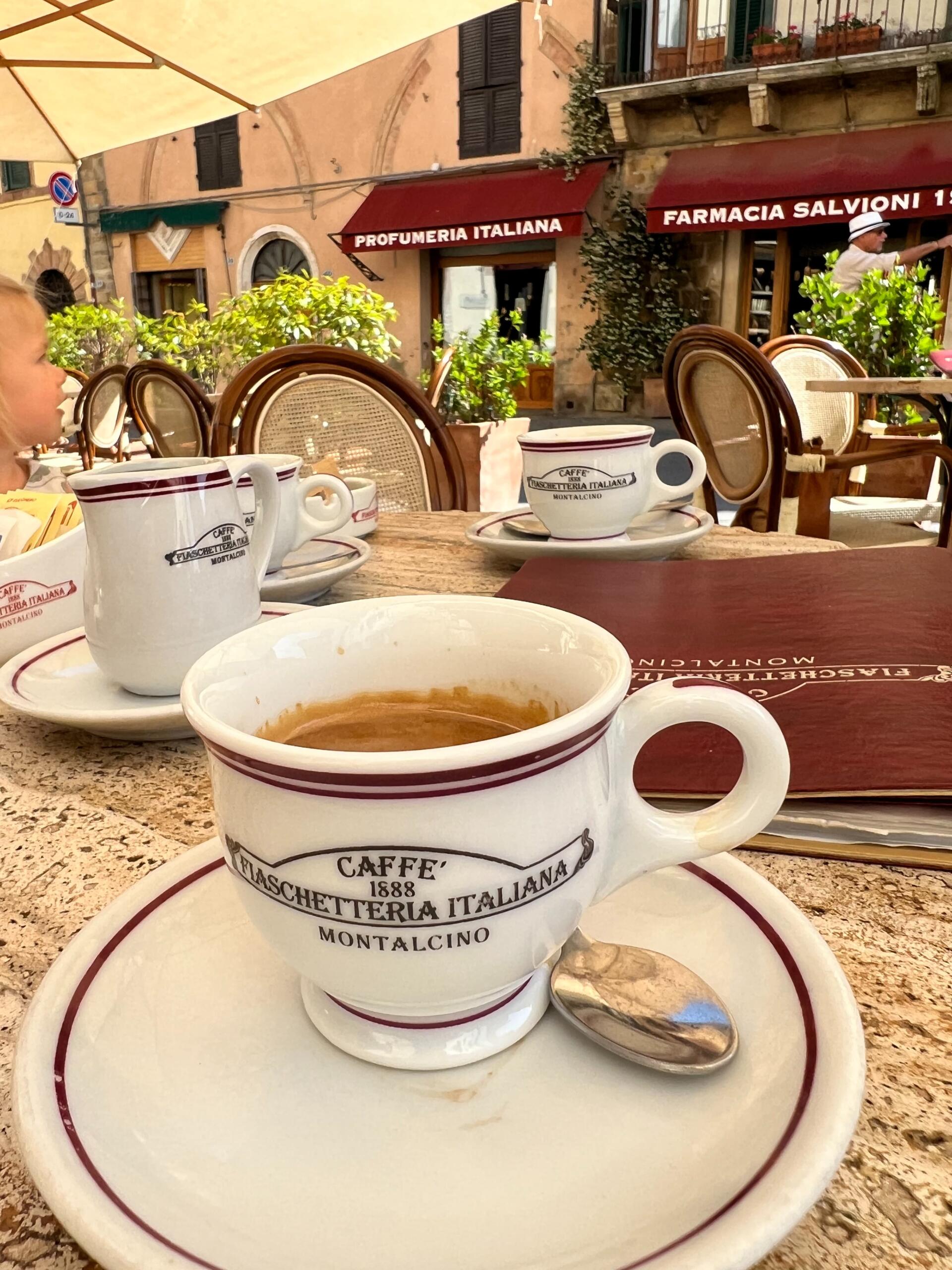 Glavna ulica vodi vas do starog dijela grada direktno na Piazzu del Popolo u srcu Montalcina. Jednom kad dođete tamo, ne možete ne zastati pored lokala Caffè 1888 Fiaschetteria Italiana. Vidi se da to nije samo još jedan kafić u nizu, a poslije smo saznali da smo otkrili pravi toskanski povijesni dragulj.
