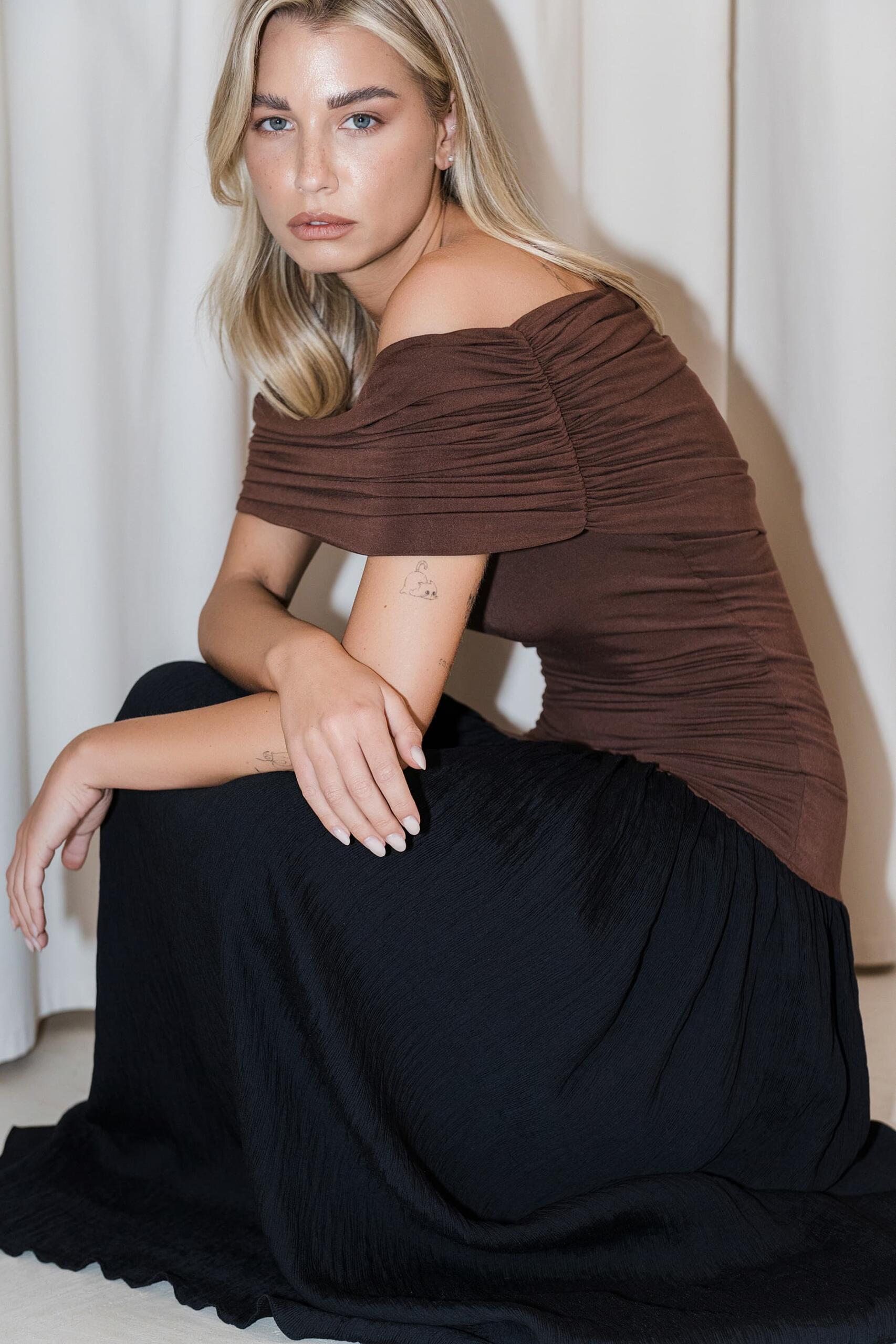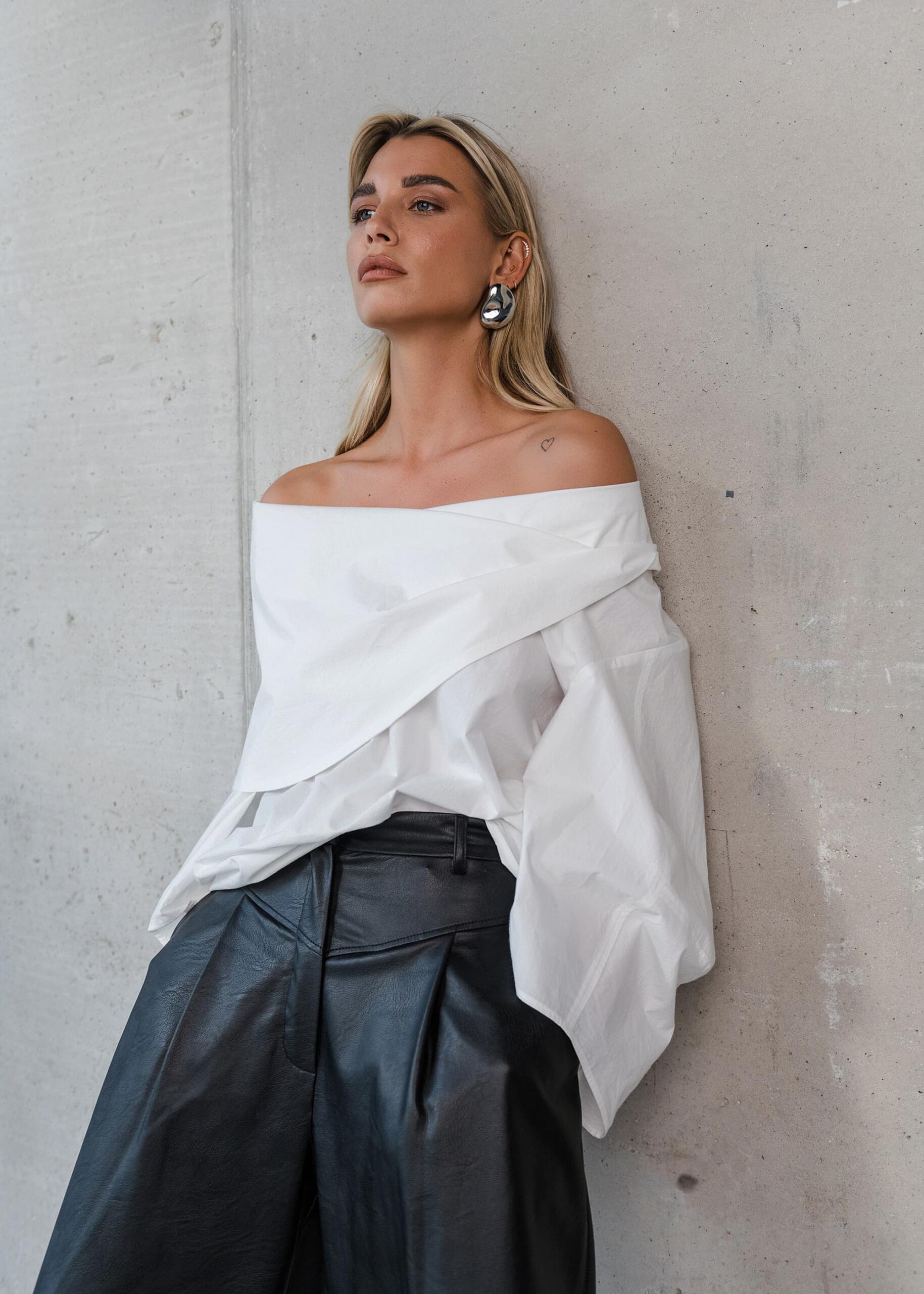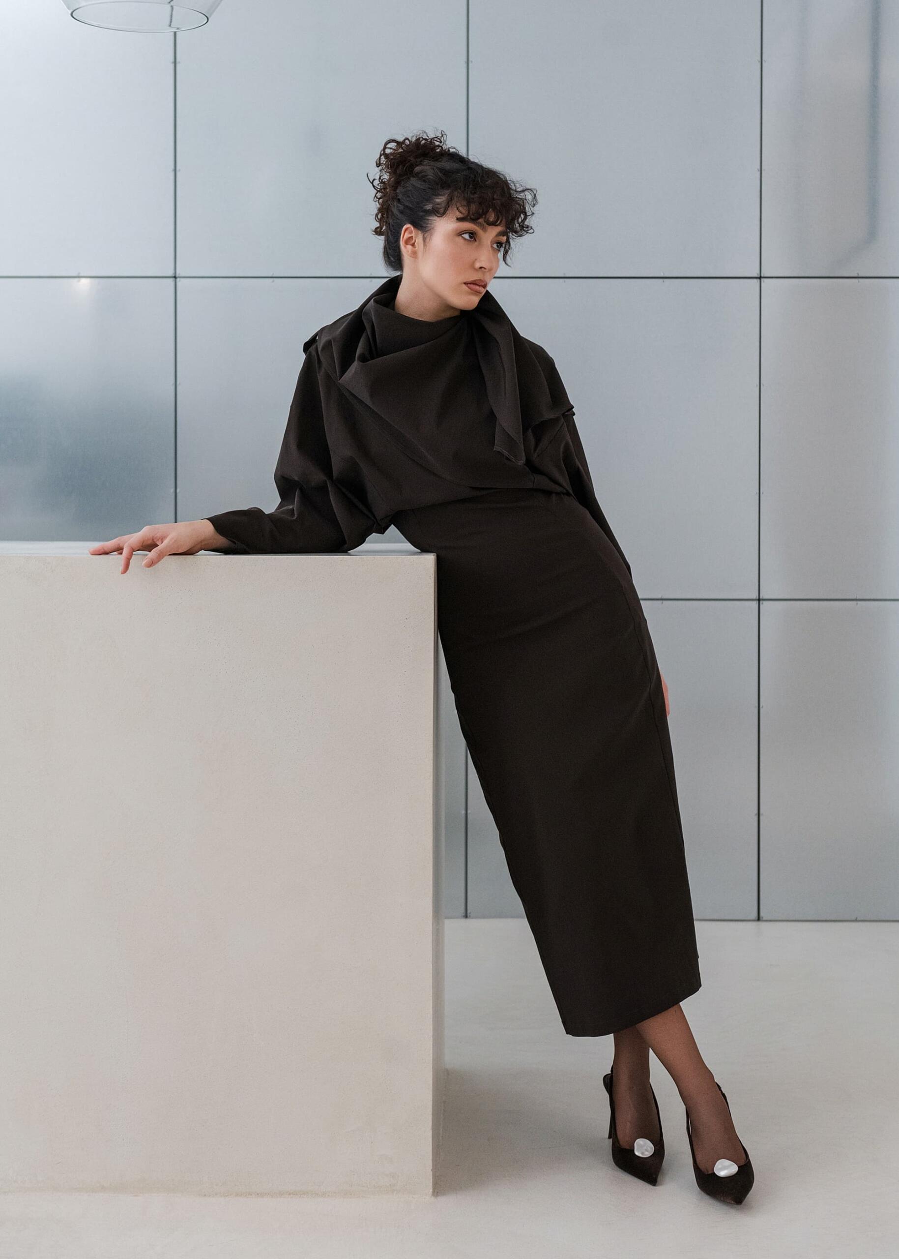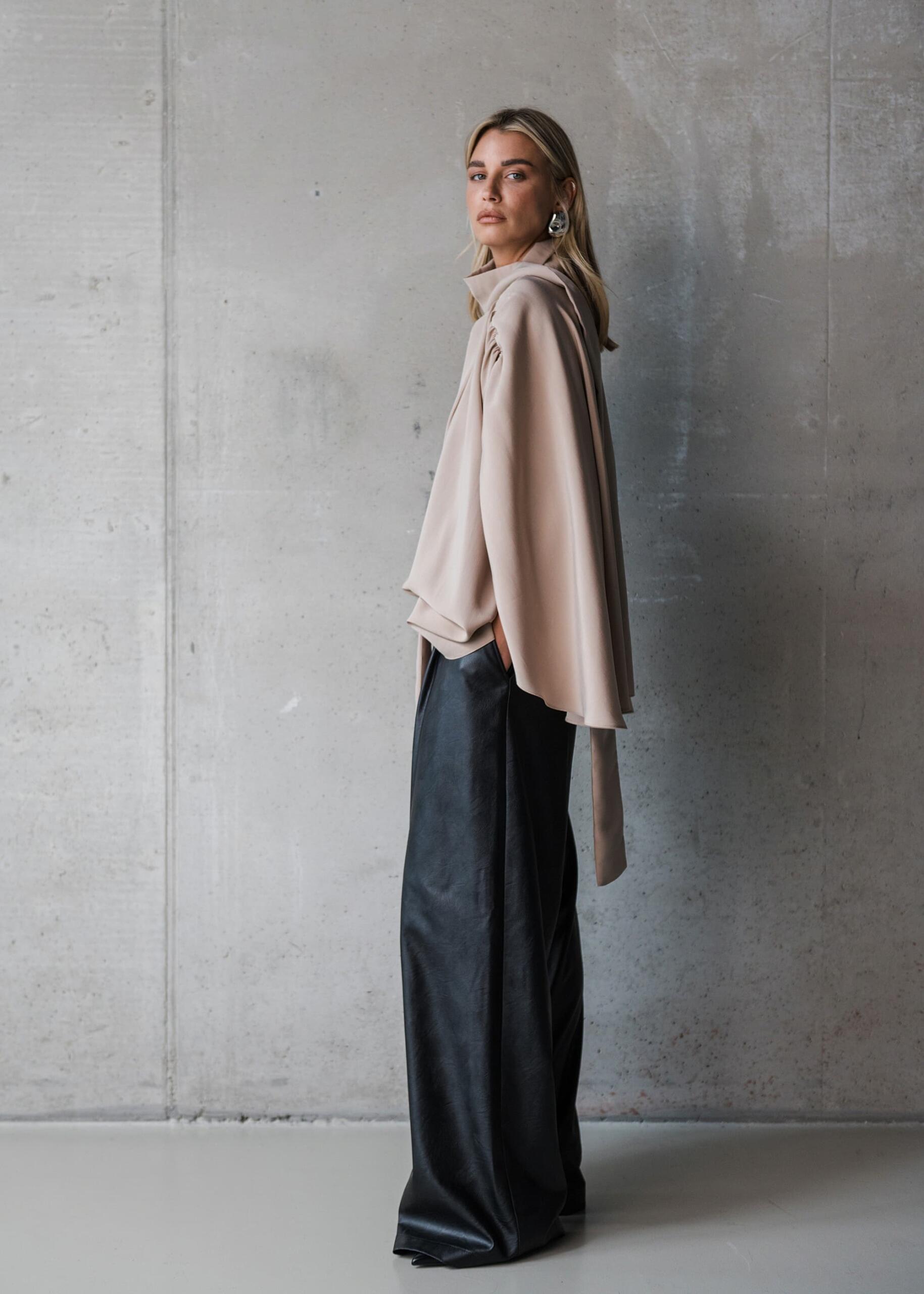 Između svečanog i ležernog, svoje mjesto pronalaze i bluze – poput Kael, Kira i Nex modela – koje spajaju strukturu i lakoću u savršenoj ravnoteži. Njihova forma prati tijelo, dok tekstura materijala — od brušenog japanskog pamuka do viskoze — stvara osjećaj profinjene mekoće i lakoće pokreta.