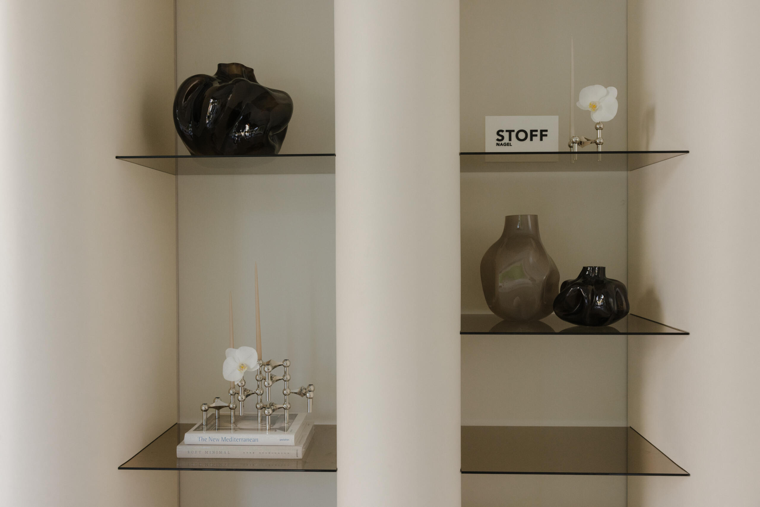 Materijali su pažljivo birani kako bi postigli ravnotežu između čiste geometrije i vizualne topline matirane mineralne površine u dijalogu su s metalnim detaljima i organskim formama. Stilski, prostor se razvija kroz spoj minimalizma, brutalizma i galerijskog pristupa, stvarajući interijer koji je istovremeno suzdržan i izražajan.