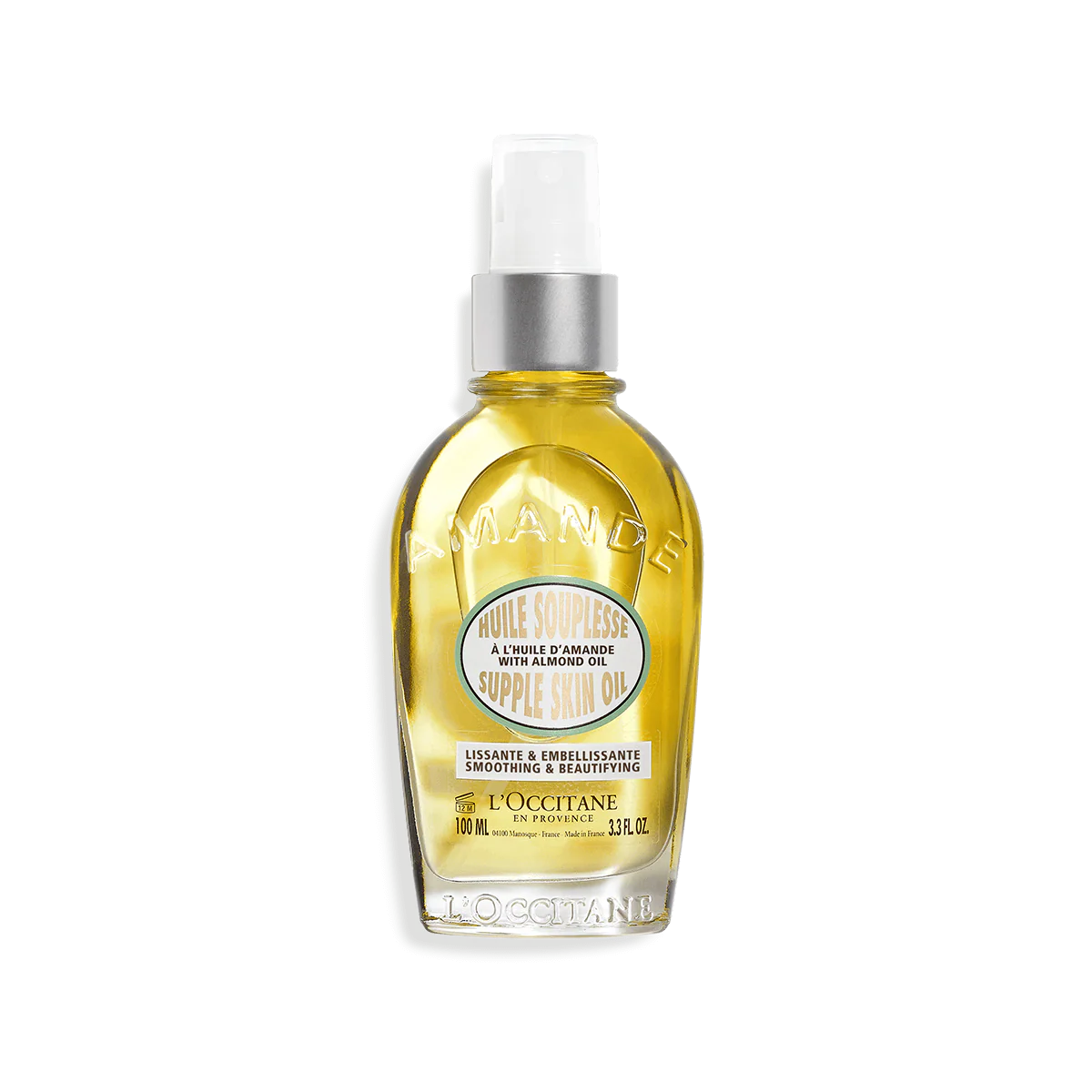 Ulje od badema s dodatkom ulja kamelije, mrkve i šipka hrani kožu, ostavljajući je mekom i sjajnom. Obogaćeno je omega-3 kiselinama koje njeguju i štite barijeru kože i štiti je od dehidracije. Ulje se brzo upija u kožu, a namijenjen je normalnoj i suhoj koži, dajući joj prekrasan zaglađen i satenski izgled. Ovo ulje smanjuje i vidljivost strija, a za sobom ostavlja predivan miris svježih badema.