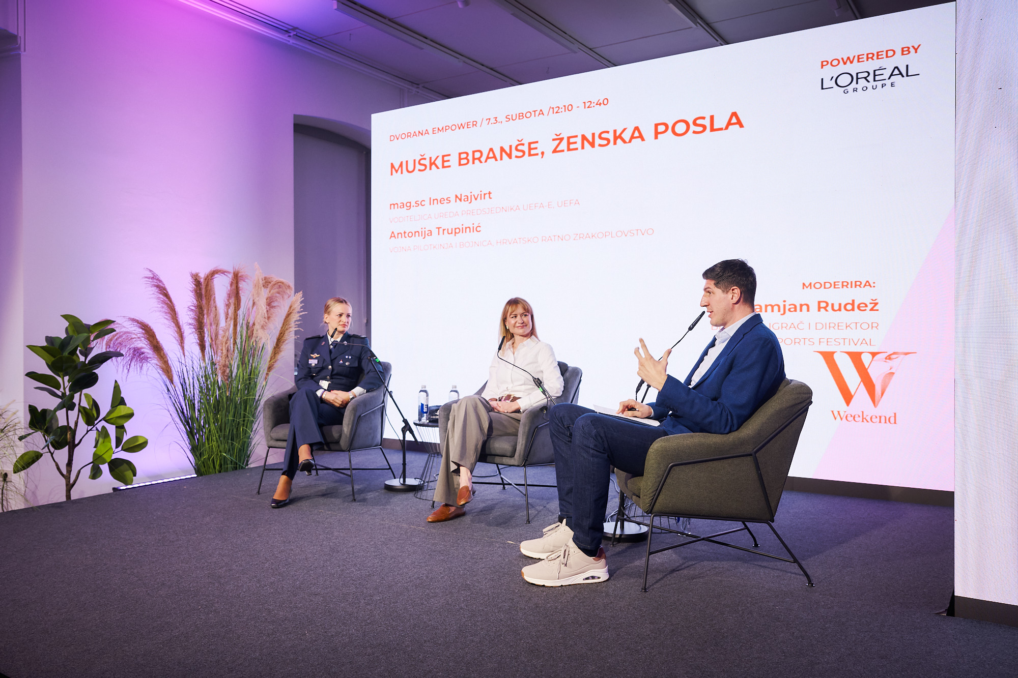 Velik interes izazvao je panel “Muške branše, ženska posla”, powered by L’Oréal Groupe. Ines Najvirt, voditeljica Ureda predsjednika UEFA-e, i Antonija Trupinić, vojna pilotkinja Hrvatskog ratnog zrakoplovstva, podijelile su iskustva rada u tradicionalno muškim industrijama.