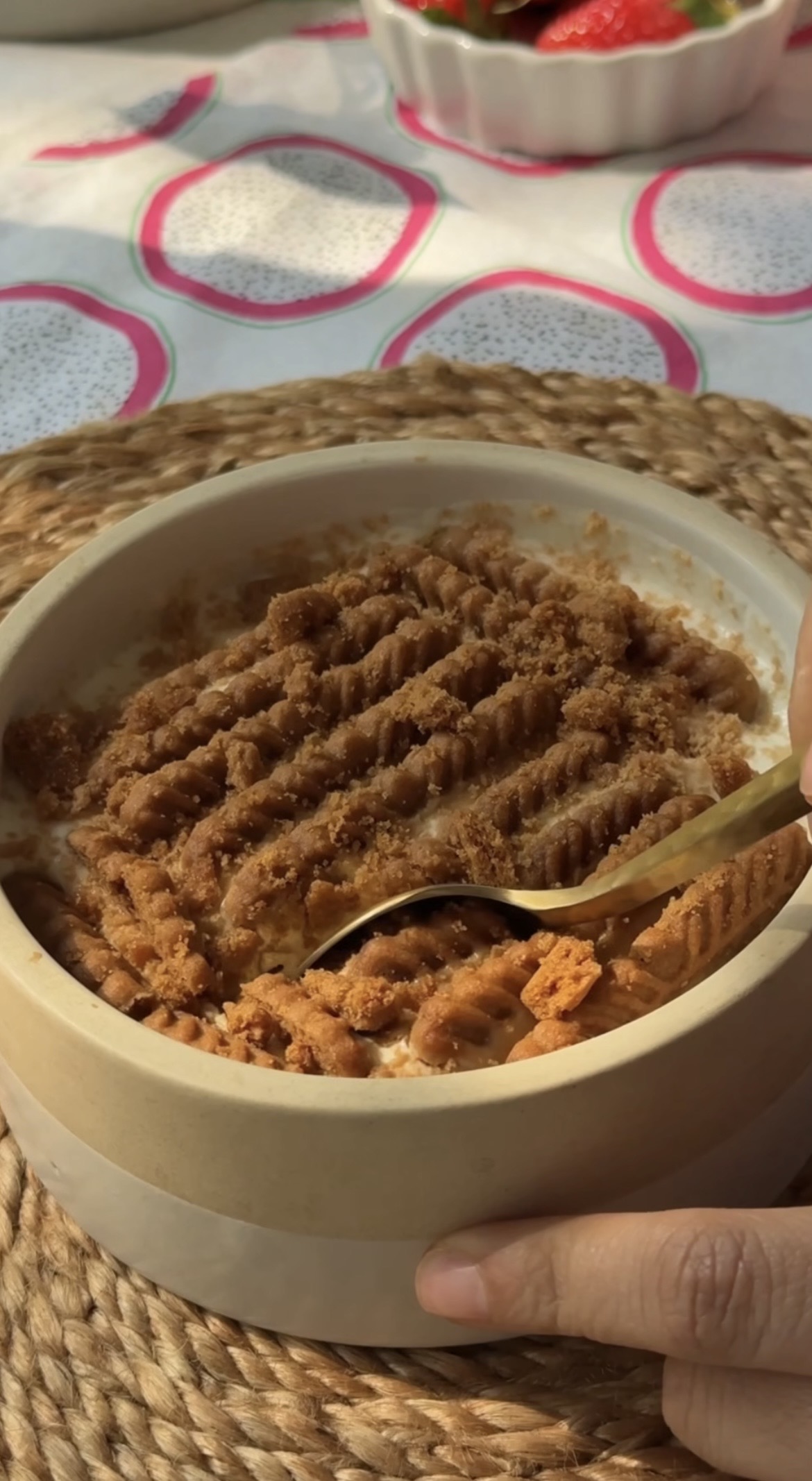 @gentianasaphiira Jumping on Japan’s viral yogurt cheesecake. Only 2 ingredients (biscoff, yogurt ➡️ overnight in fridge)…I get the hype! 🥰🤤 . . . . . #yogurtcheesecake#japaneseyogurtcheesecake#viralyogurtcheesecake#fyp#foryoupage❤️❤️